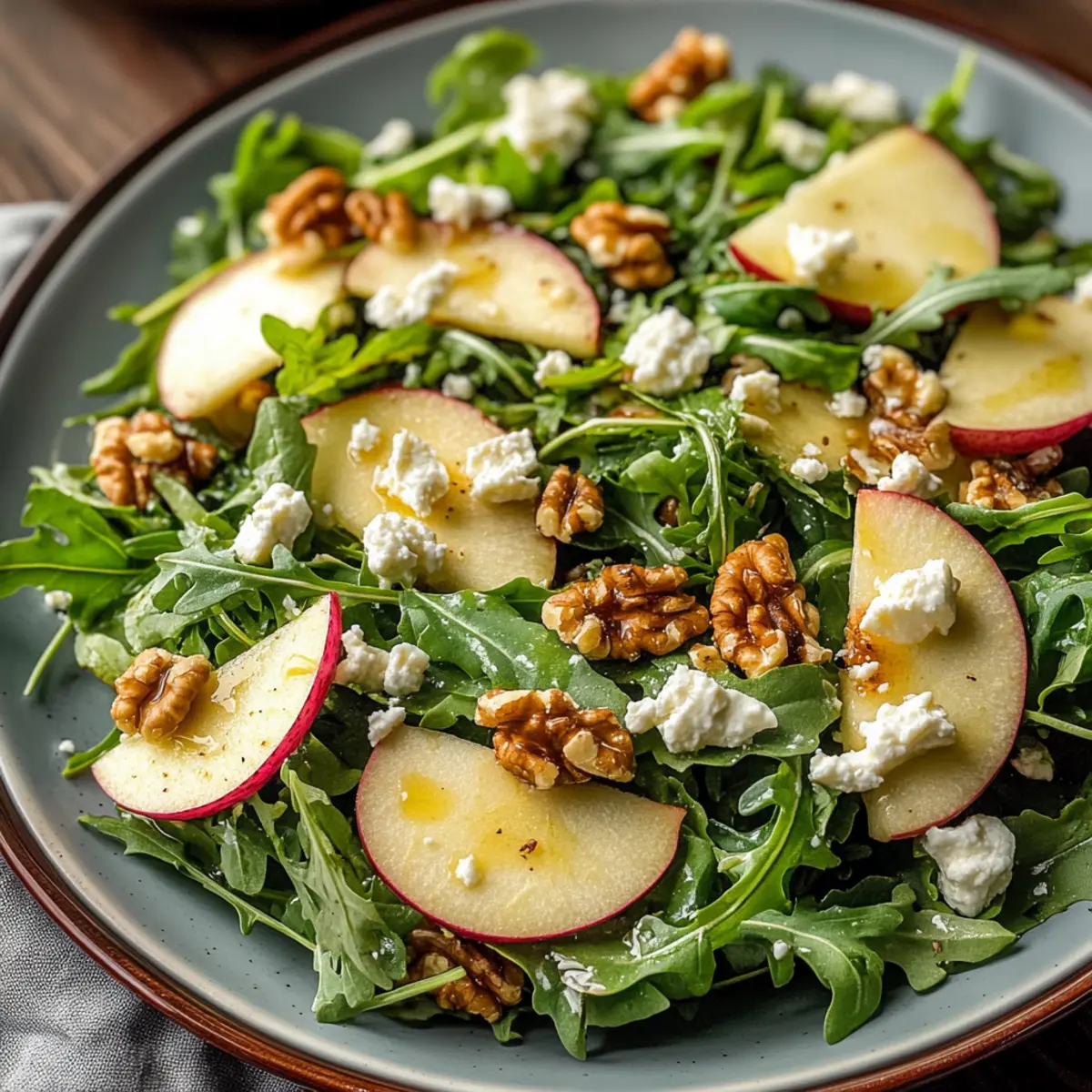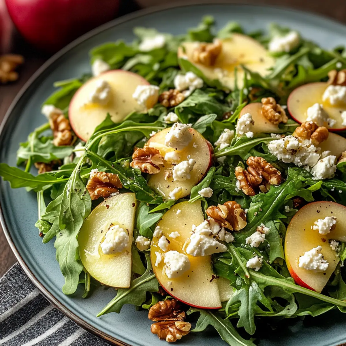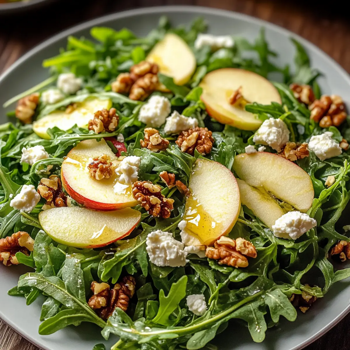 • Arugula – A peppery leafy green that serves as the base, creating a delightful contrast with the sweet apples.
