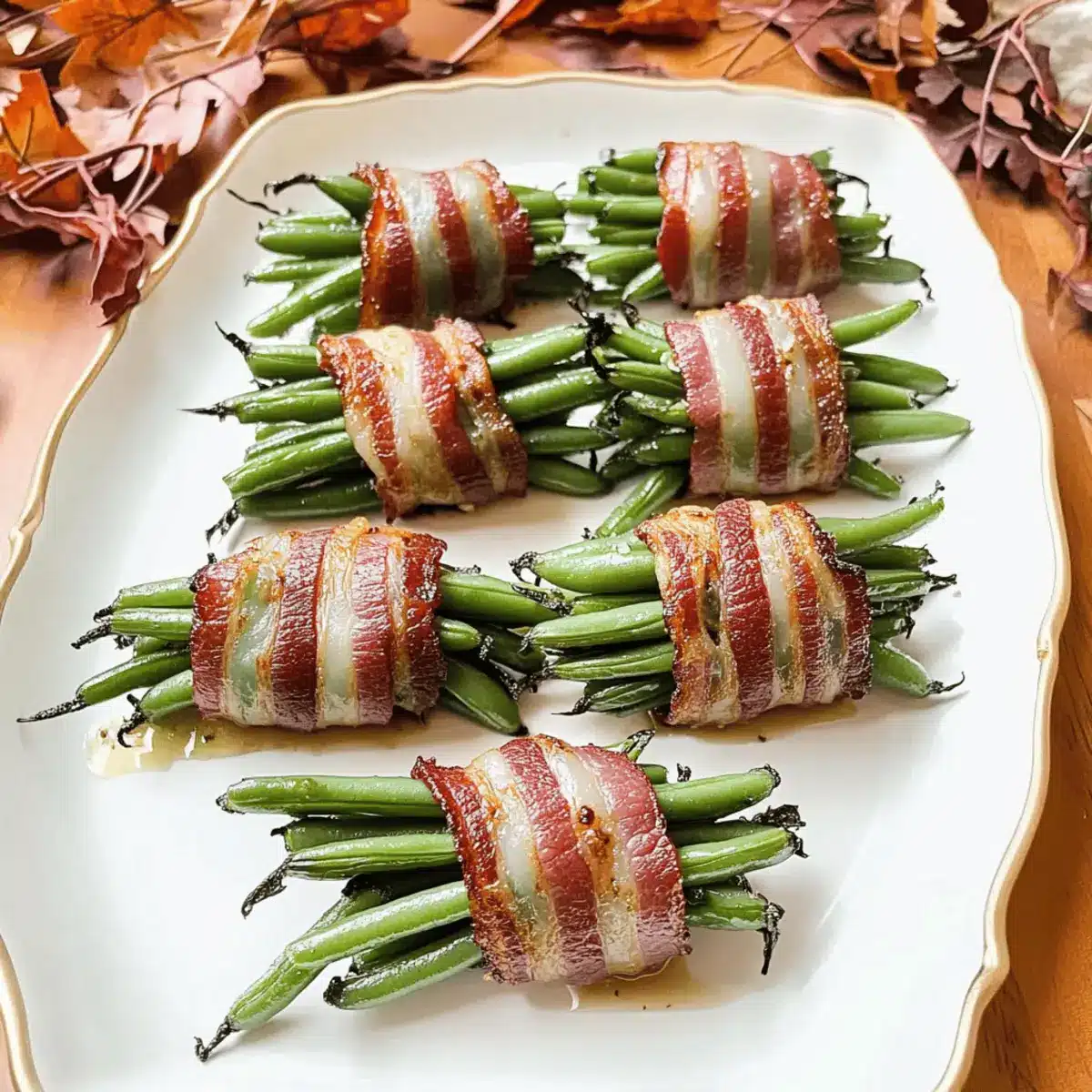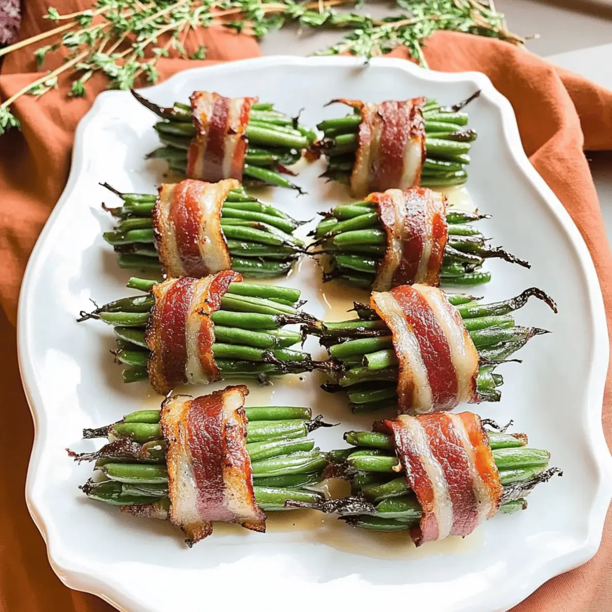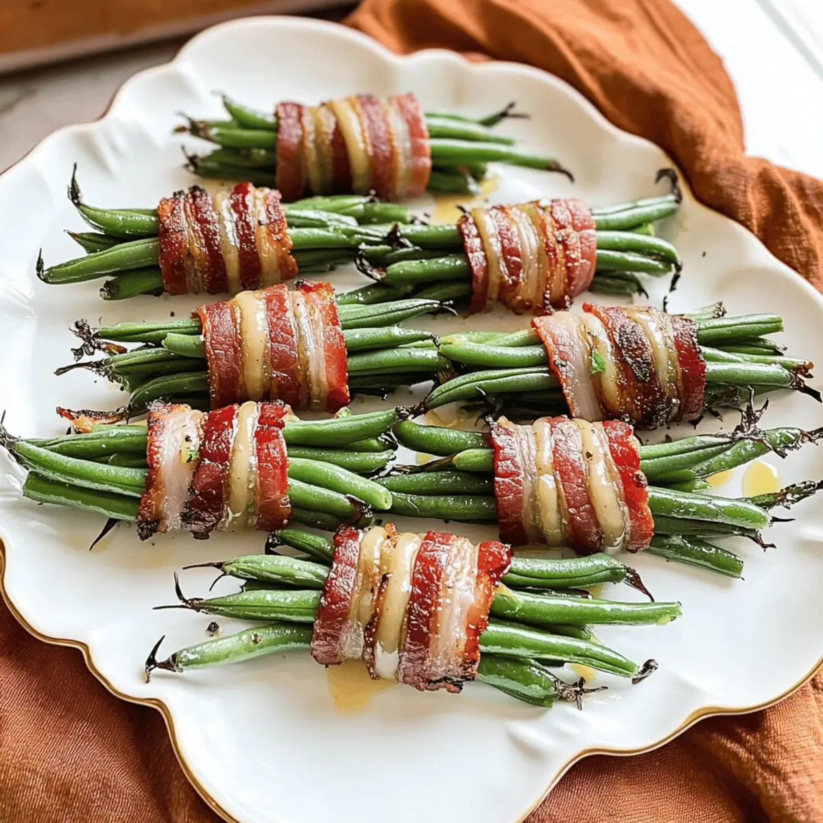 Irresistible Combination: The fusion of crispy bacon and tender green beans creates a taste sensation that is hard to resist. Flavorful Glaze: Finished with a garlic butter glaze, each bite is packed with rich, savory flavor. Quick Preparation: You’ll love that these Bacon-Wrapped Green Bean Bundles can be whipped up in just 30 minutes, making them perfect for last-minute gatherings. Diet-Friendly: Ideal for various diets, they’re gluten-free, low-carb, and paleo-friendly, catering to all your guests. Crowd-Pleasing Appeal: With their stunning presentation, these bundles are sure to be a hit at any holiday meal, making them a must-have addition to your festive spread!