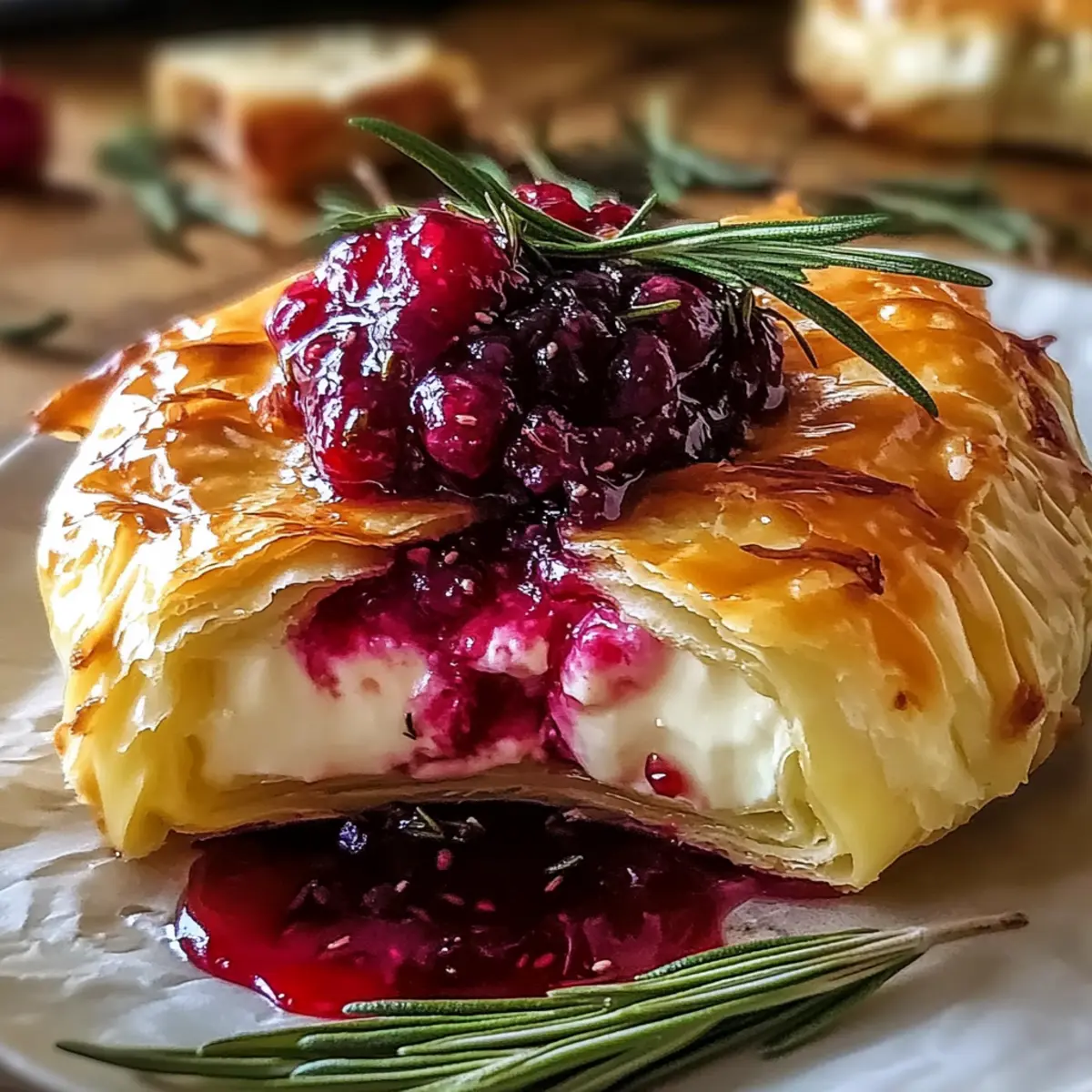Once assembled, place the wrapped Brie in the oven and bake for 20-25 minutes. Keep an eye on it; you want a rich, golden-brown pastry that gets slightly puffed. The aroma of the baking Baked Brie Raspberry Rosemary will fill your kitchen, heightening the anticipation for the deliciousness to come.