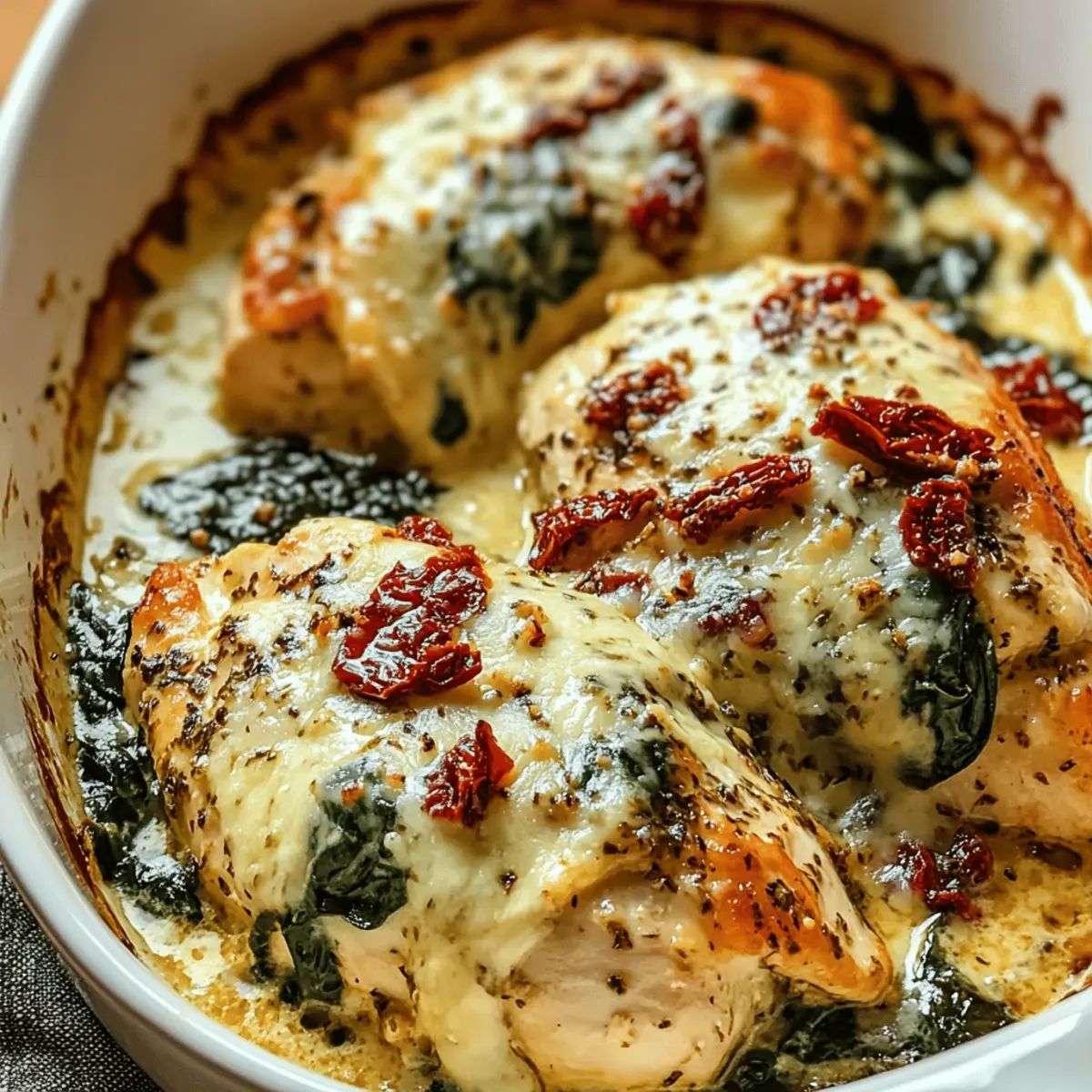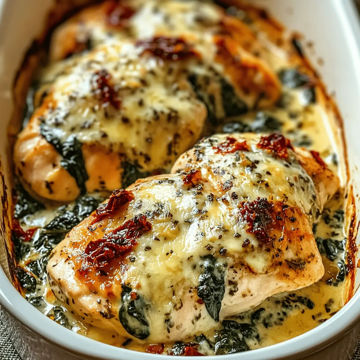 These Baked Tuscan Chicken Casserole is a fantastic recipe for meal prep enthusiasts! You can assemble the casserole up to 24 hours in advance, storing it covered in the refrigerator. To maintain quality, be sure to cover the chicken and sauce tightly to prevent drying. Additionally, mix the spinach and remaining cheese only when you’re ready to bake; this ensures a fresh taste and optimal texture. When you’re ready to serve, simply preheat your oven, remove the foil, stir in the spinach, top with mozzarella, and bake as directed. This way, you’ll have a comforting, homemade meal with minimal last-minute effort!