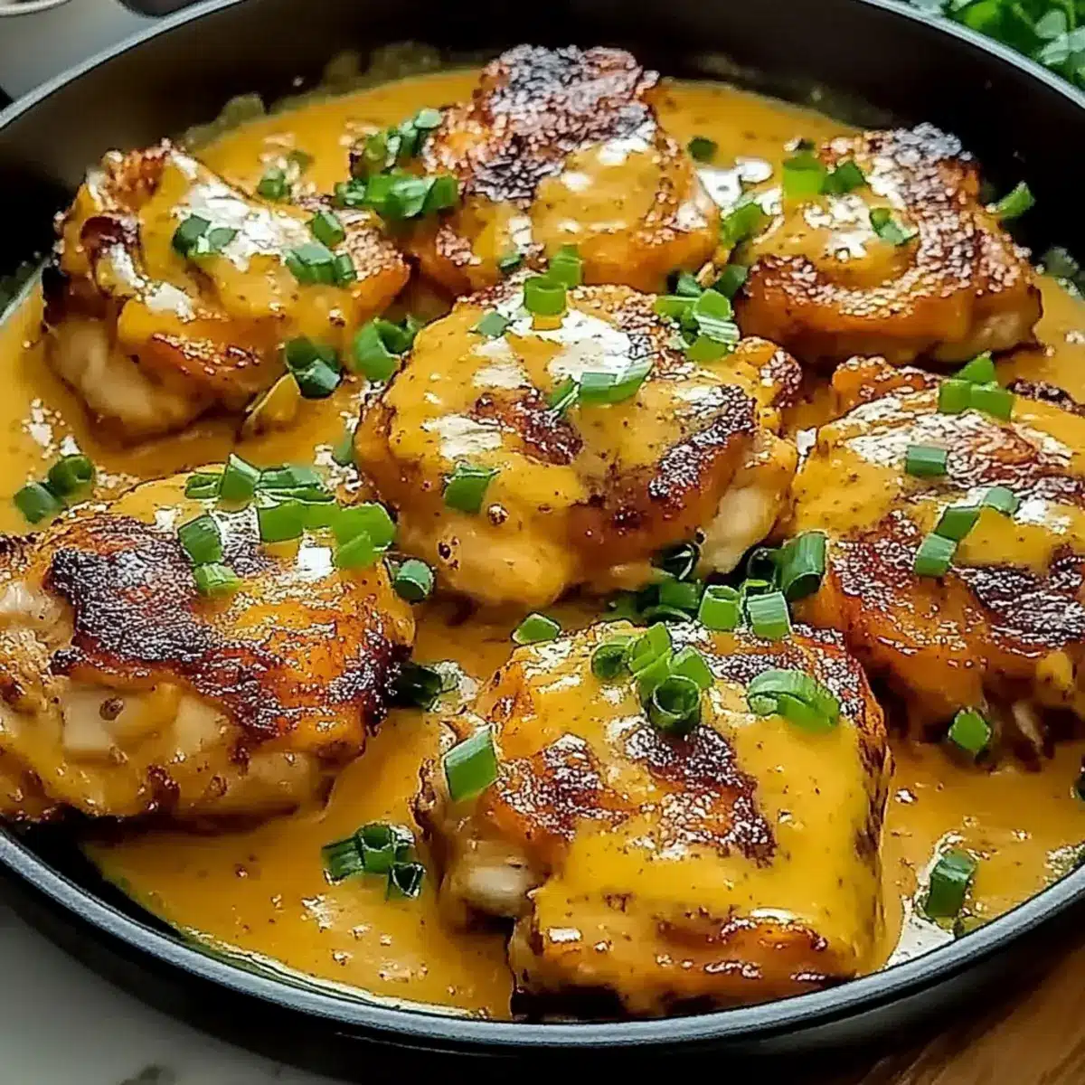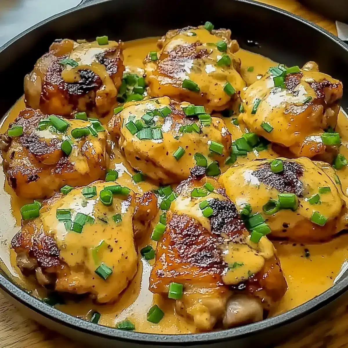 - Transfer the coated Chicken Thighs back to a serving plate and garnish with chopped green onions. Serve immediately.