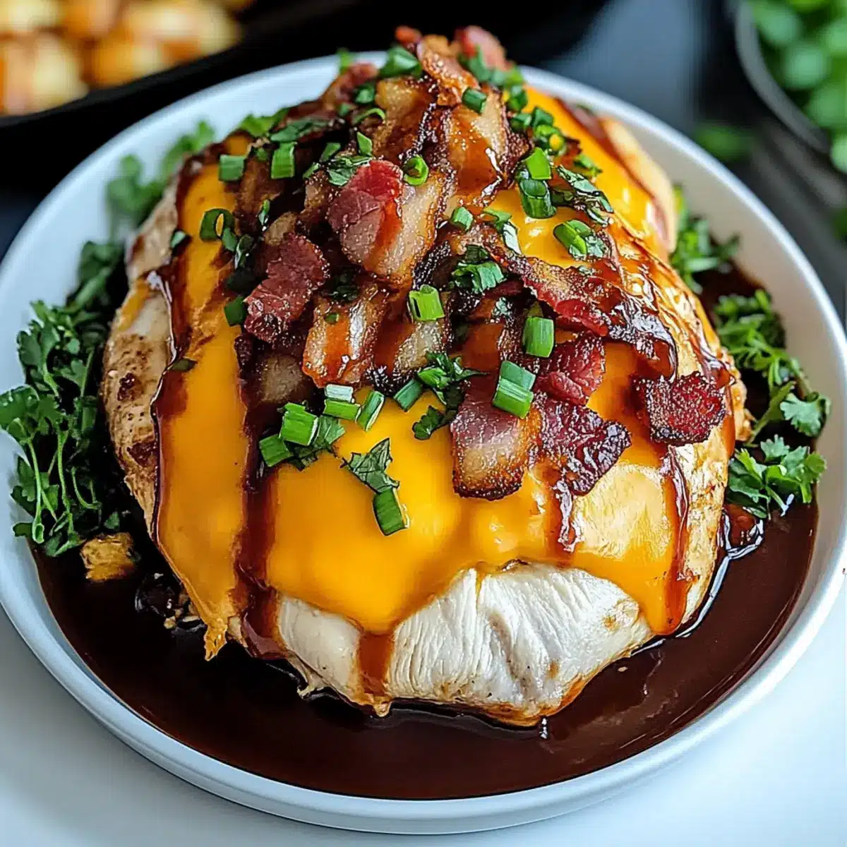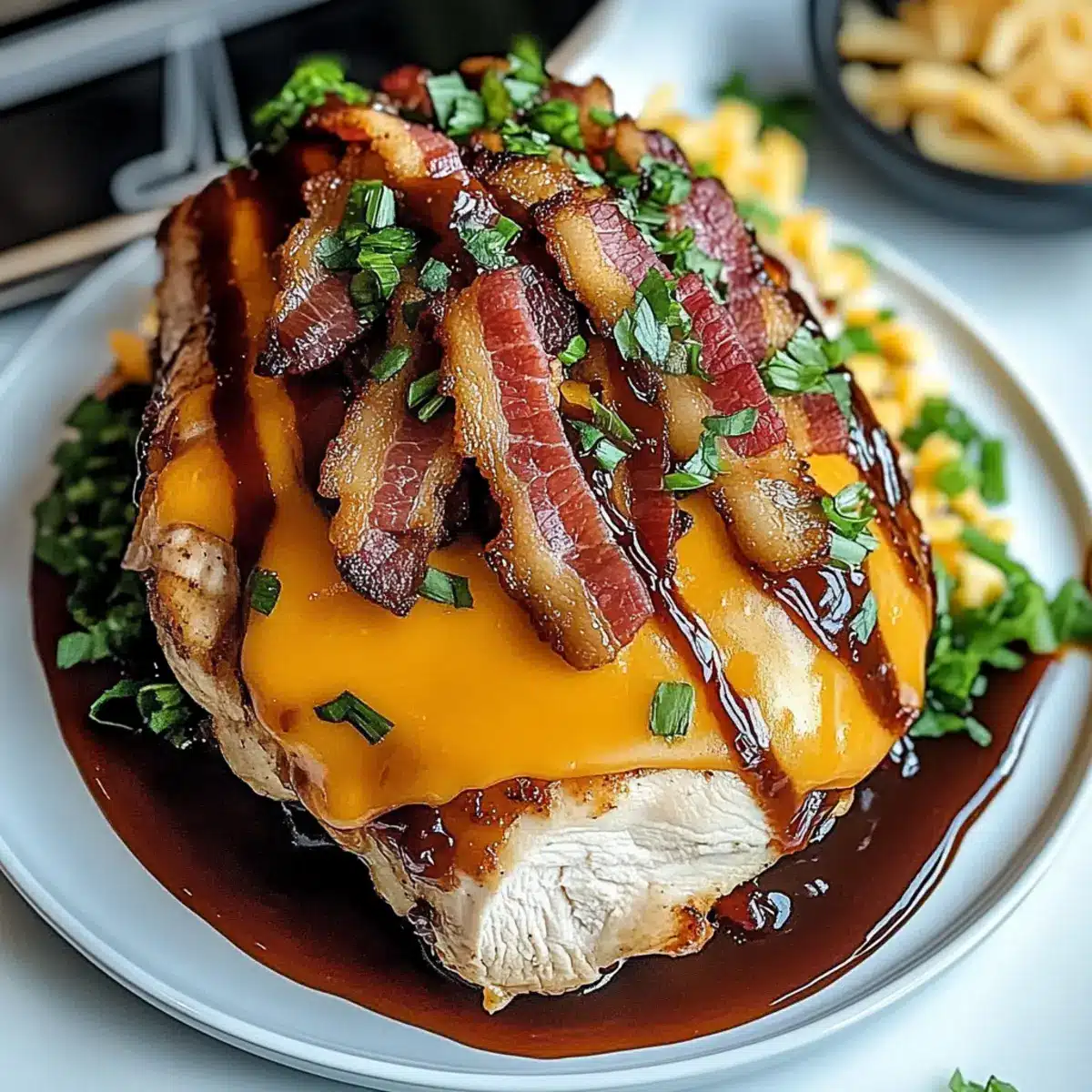 Boneless, skinless chicken breasts are recommended as they provide a juicy base that absorbs all the smoky, savory flavors of the toppings. This cut is easy to cook and tender, ensuring a delightful bite every time!