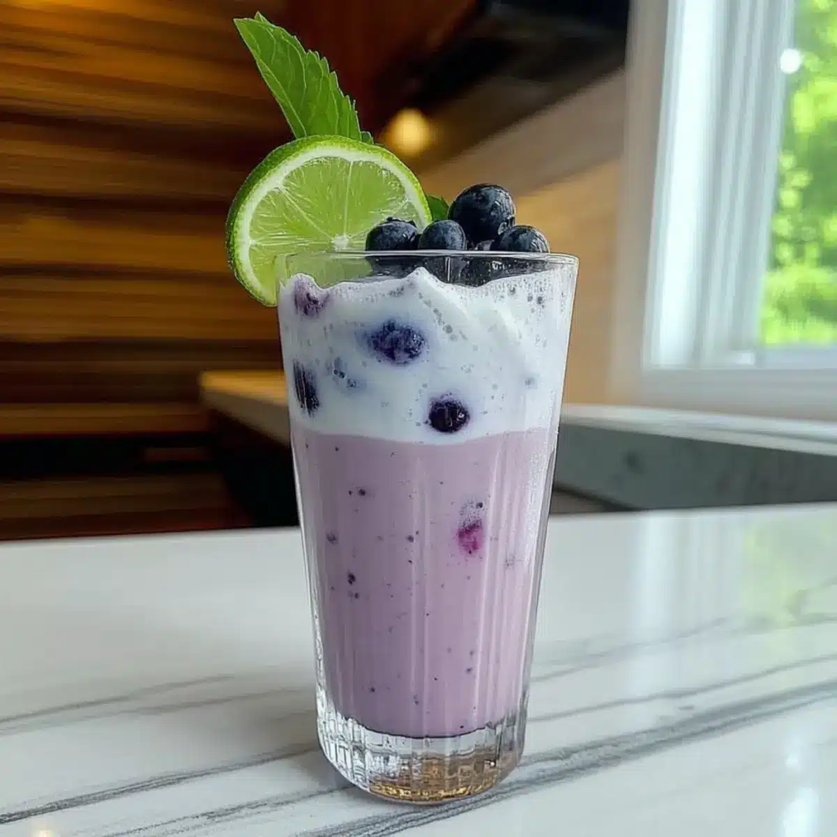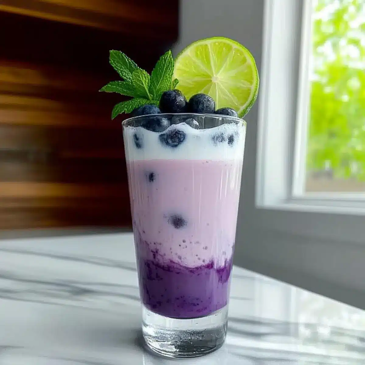 - Garnish with fresh blueberries, a slice of lime, and a sprig of mint. Serve immediately and enjoy!