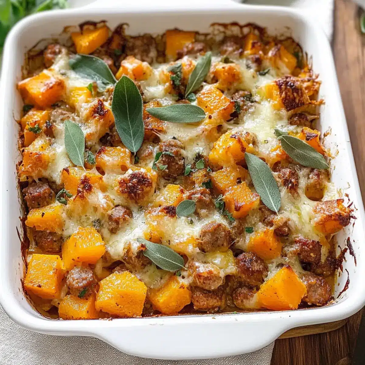 Certainly! The Butternut Squash Casserole is versatile! You can easily make it gluten-free by using a gluten-free sausage. For a vegetarian version, simply omit the sausage and add extra vegetables like spinach or mushrooms. Always check for any allergies related to specific ingredients, like cheese or apples, and feel free to swap with suitable alternatives as needed.