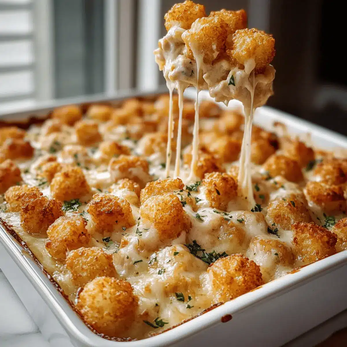 Creamy Chicken Alfredo Tater Tot Casserole for Cozy Nights