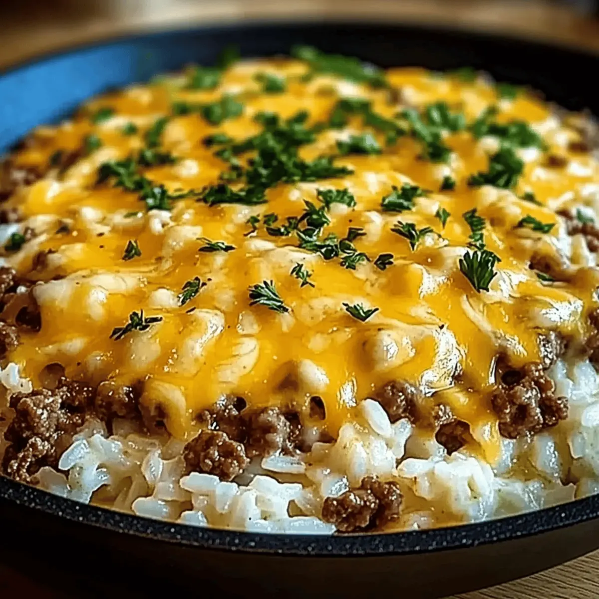 Garlic Butter Beef and Rice Skillet with Cheddar Parmesan Sauce Made Easy