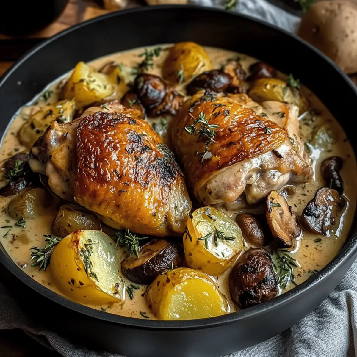 Herb Roasted Chicken in Creamy White Sauce with Mushrooms & Potatoes