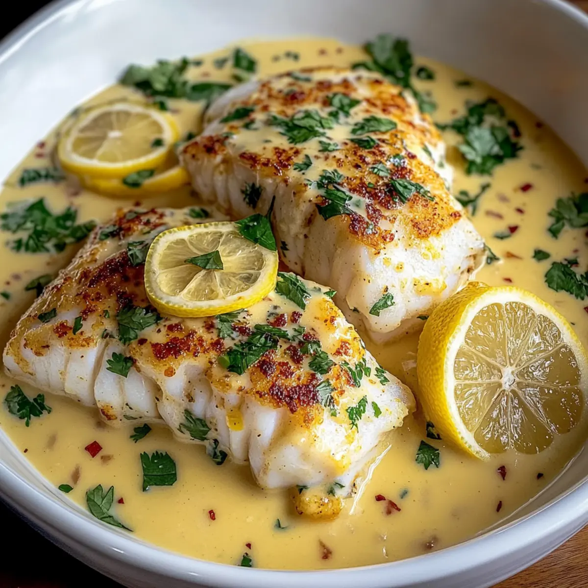 Baked Cod in Coconut Lemon Cream Sauce for a Tropical Escape