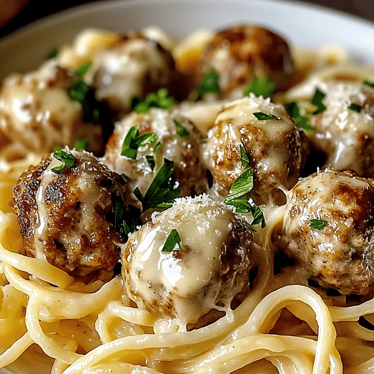 Garlic Butter Meatballs Over Creamy Linguine Bliss