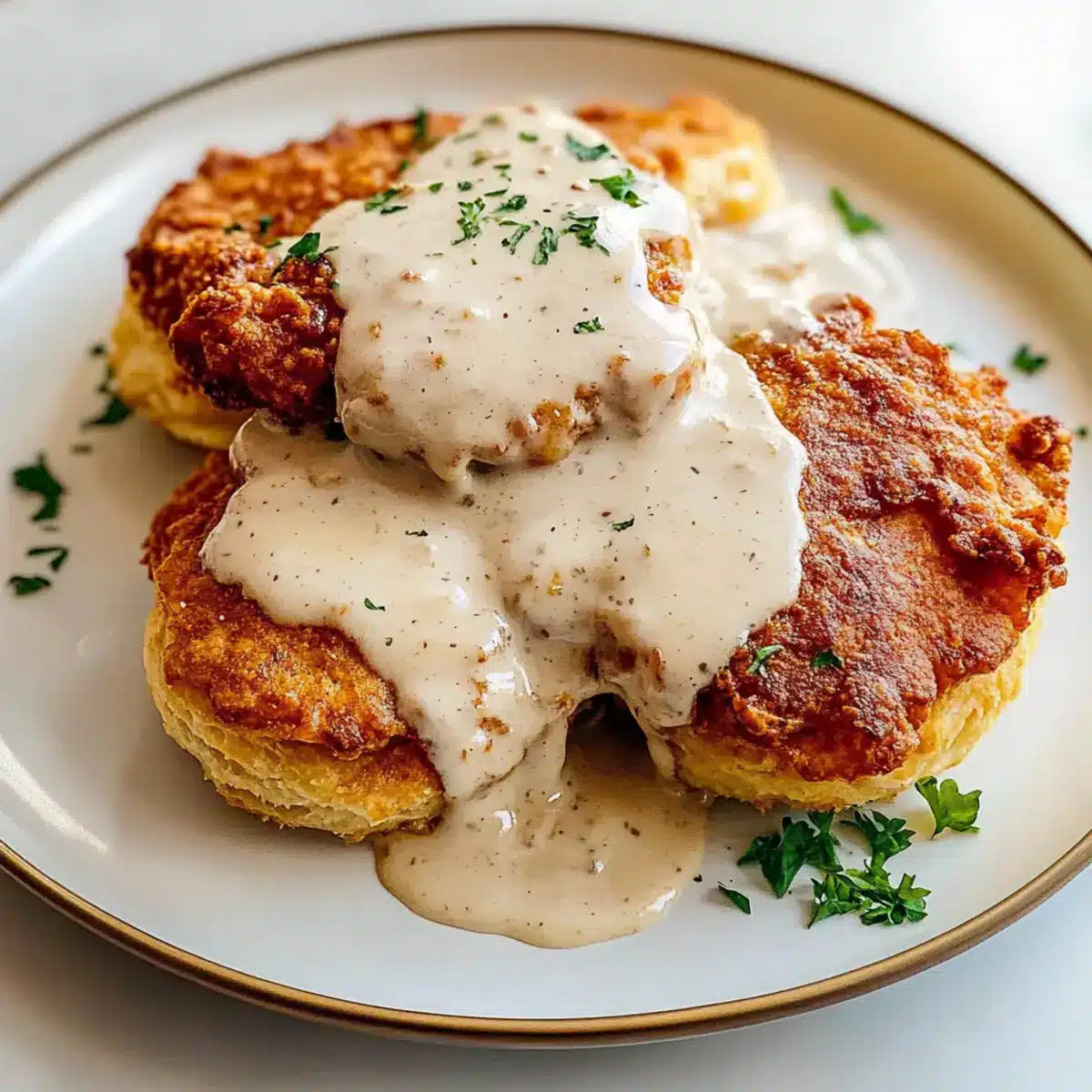 Absolutely! For longer-term storage, you can freeze the chicken and gravy separately in freezer-safe containers or bags for up to 3 months. When you’re ready to enjoy, thaw both in the fridge overnight. To reheat, bake the chicken in a preheated oven at 350°F (175°C) for about 15-20 minutes for crispiness, and gently warm the gravy in a saucepan over low heat, whisking in a splash of half and half to restore its creamy texture.