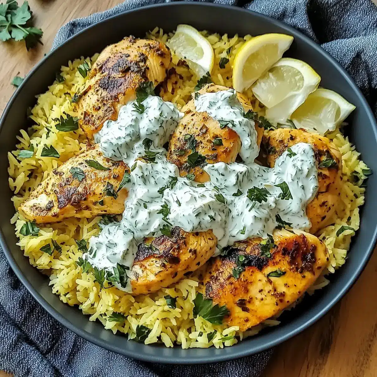 - Flavor Boost: For a delicious aroma, consider marinating the chicken briefly in olive oil with salt, pepper, and some lemon juice before cooking—this enhances the overall flavor of your Chicken Tzatziki Rice.