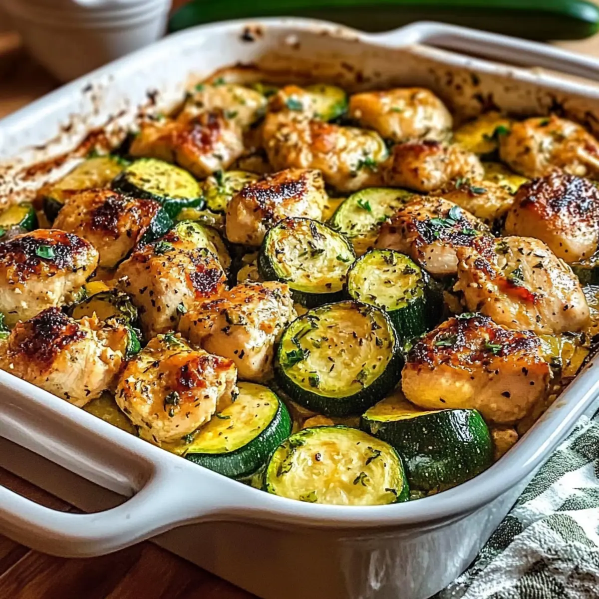 As I stood in my kitchen, the sizzling sound of chicken browning filled the room, mingling with the intoxicating aroma of roasted garlic and smoky paprika. It was time to unveil my latest creation: the Easy Chicken Zucchini Bake. This dish is not just a hearty, one-dish meal—it’s a culinary lifesaver for busy weeknights! Packed with over 30 grams of protein per serving, it effortlessly incorporates nutritious zucchini, making it a nutritious delight even for the pickiest of eaters. Plus, the best part? You’ll have minimal cleanup afterward, allowing you more time to enjoy laughter around the dinner table. Curiosity piqued? Let me guide you through this simple yet satisfying recipe that is destined to become a family favorite!