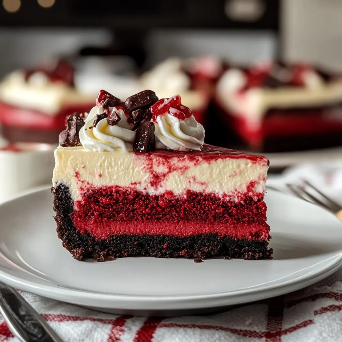These Christmas Red Velvet Cheesecake preparations are perfect for busy cooks looking to save time during the holiday rush! You can prepare the crust and filling up to 24 hours in advance. First, bake the Oreo crust and let it cool completely before assembling. Then, prepare the cheesecake filling and refrigerate it separately in an airtight container. When you’re ready to bake, simply pour the filling onto the cooled crust and bake as instructed. To maintain the cheesecake’s creamy texture, be sure to cool it in the oven and chill it for at least 6-8 hours before serving. This way, you’ll enjoy a fabulous dessert that’s just as delicious, with minimal effort when the festivities begin!