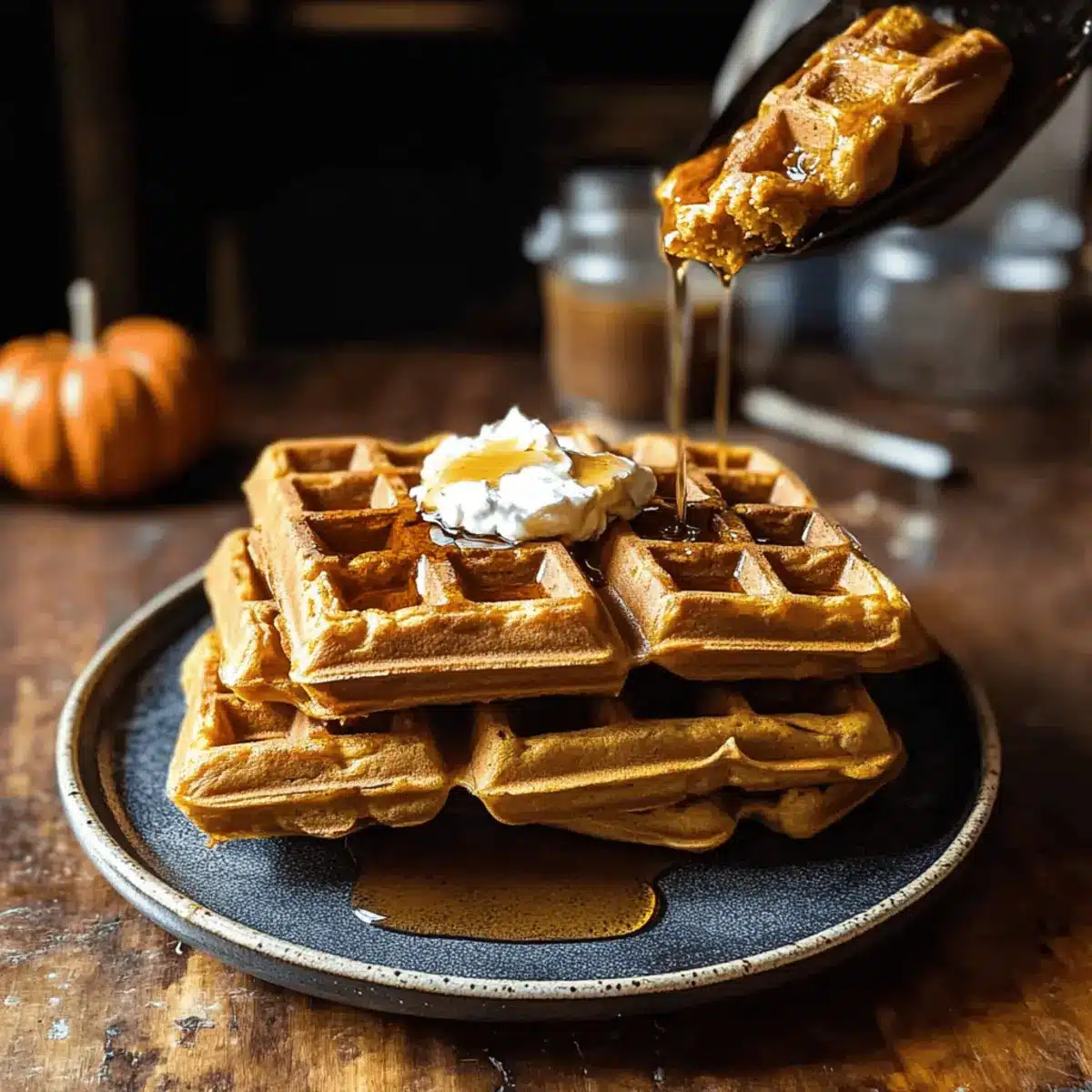 Crispy Bacon: The savory, smoky flavors of crispy bacon provide a perfect contrast to the sweet pumpkin waffles.