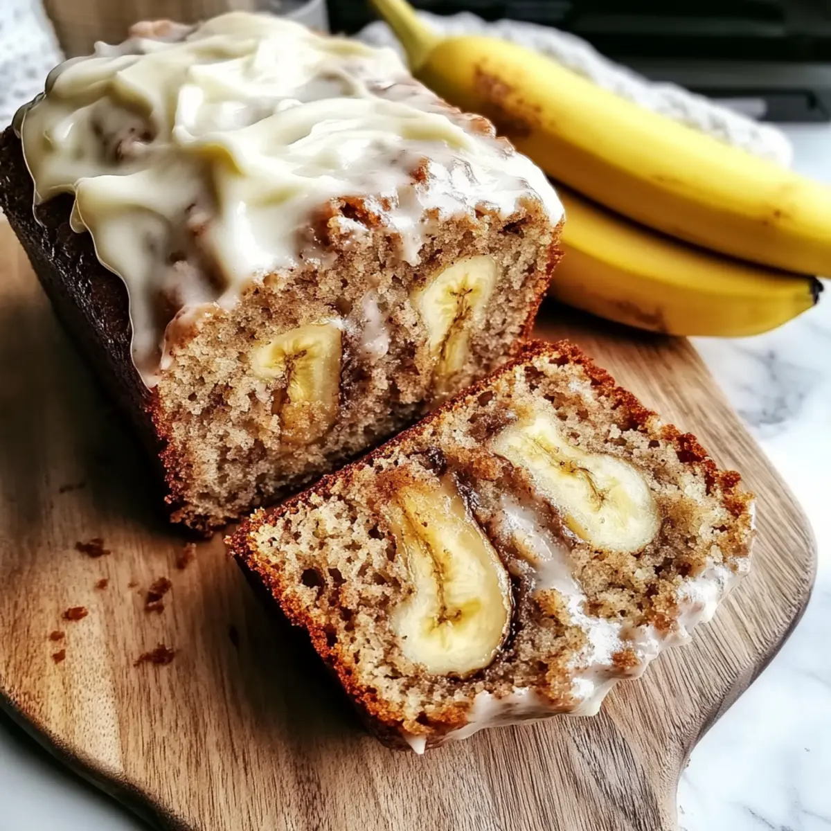 Once your Cinnamon Roll Banana Bread is completely cool, generously spread the cream cheese frosting over the top. Slice the bread into thick pieces, revealing the beautiful cinnamon swirls inside. Serve it warm with a cup of coffee or tea, and let each bite bring warmth and joy to your day!