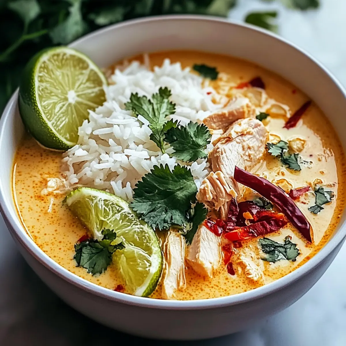 Comforting and satisfying, this dish brings warmth to your table on chilly nights. Simplicity is key; it’s a one-pot meal that minimizes cleanup while maximizing flavor. Rich, Tropical Taste: The creamy coconut milk paired with zesty lime creates a delightful harmony that transports you to Southeast Asia. Customizable: Feel free to toss in your favorite vegetables, turning this dish into a nutritious powerhouse. For a complete meal, serve it alongside a crisp salad or steamed veggies, similar to what you’d enjoy with Crockpot Coconut Chicken. Crowd-Pleasing and quick, it’s perfect for weeknight dinners when you crave something special yet easy to whip up!