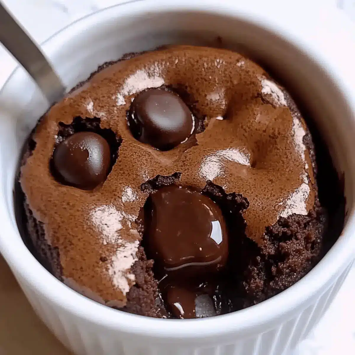 Place the filled ramekin in the microwave and cook on high for 1.5 to 2 minutes. If you prefer a gooier center, aim for about 1.5 minutes, but if a cake-like consistency is your goal, extend the time to 2 minutes. Keep an eye on the microwave to avoid overcooking.