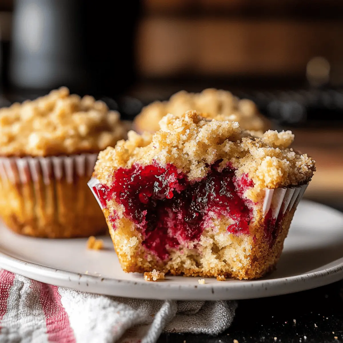 Warm Beverages: Cozy up with a cup of steaming coffee or spiced chai, enhancing the sweet-tart flavors of the muffins. A rich latte also complements the crumb topping beautifully.