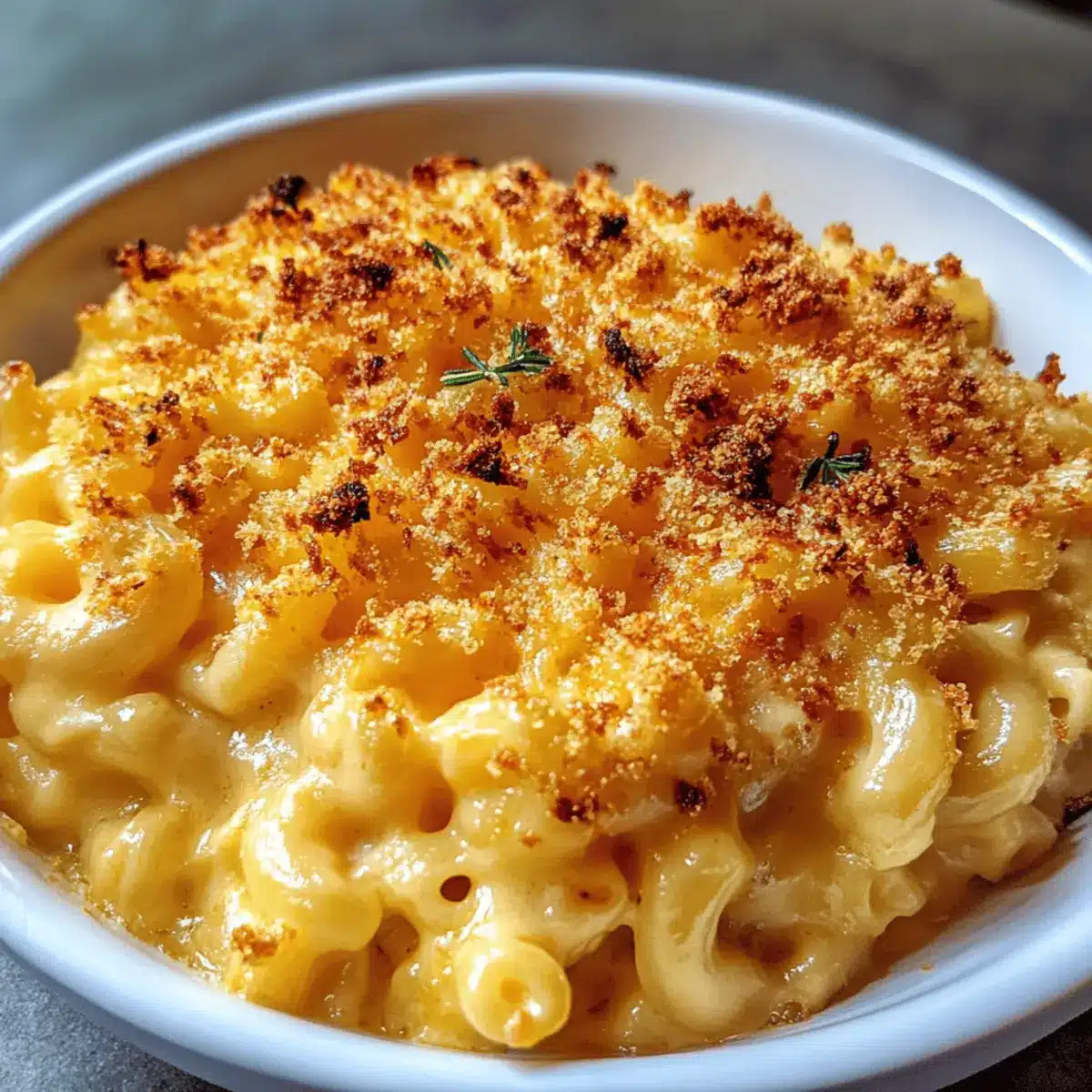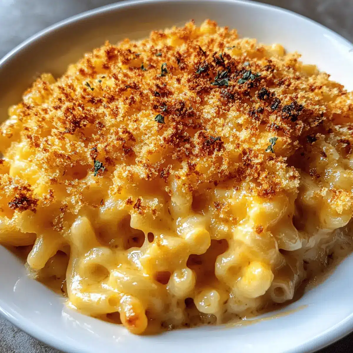 If you like crunch, sprinkle 1/4 cup of breadcrumbs over the top—this is optional but highly recommended. You can mix the breadcrumbs with a bit of melted butter for extra flavor and a golden finish. This crunchy layer adds texture that contrasts wonderfully with the creamy base of your mac-and-cheese.