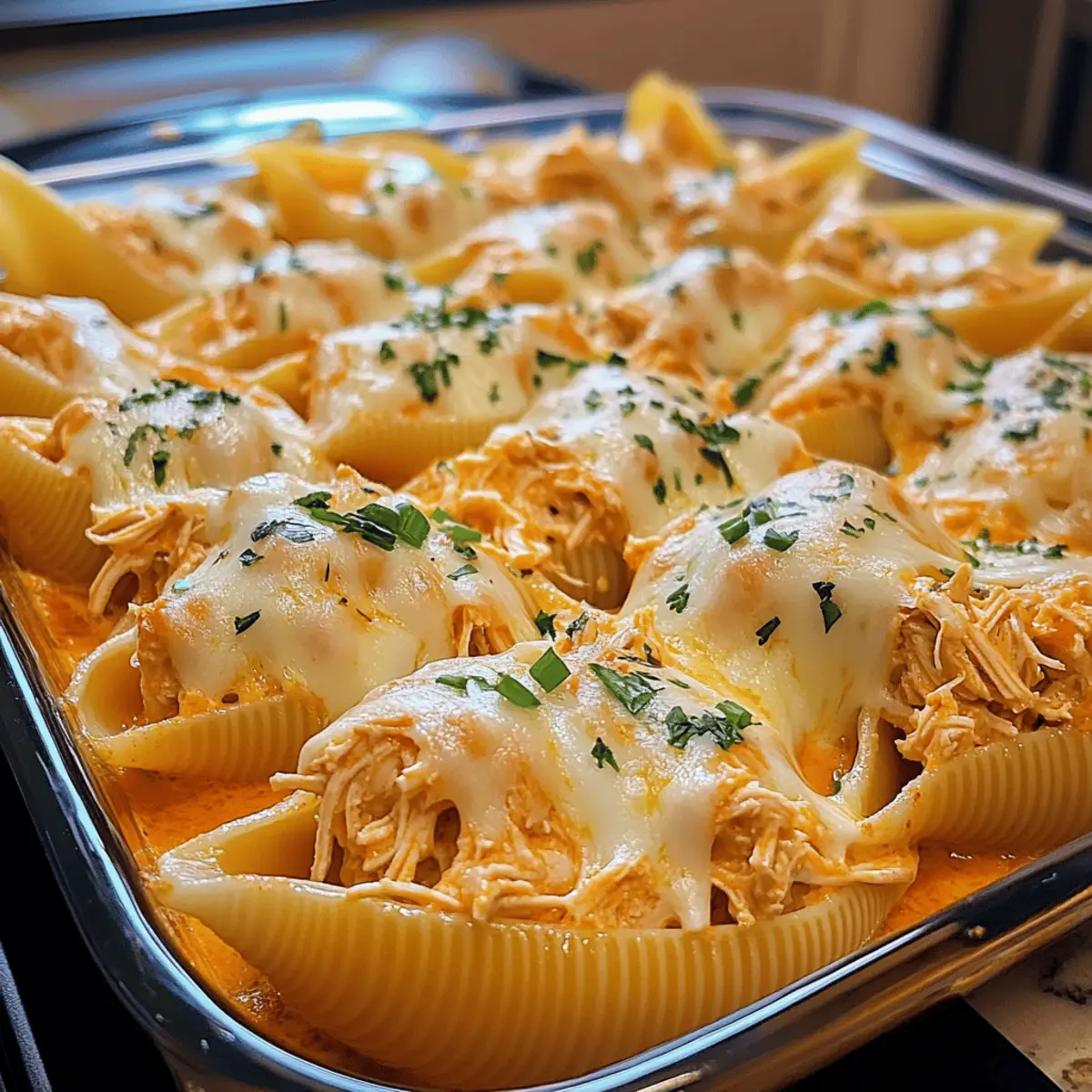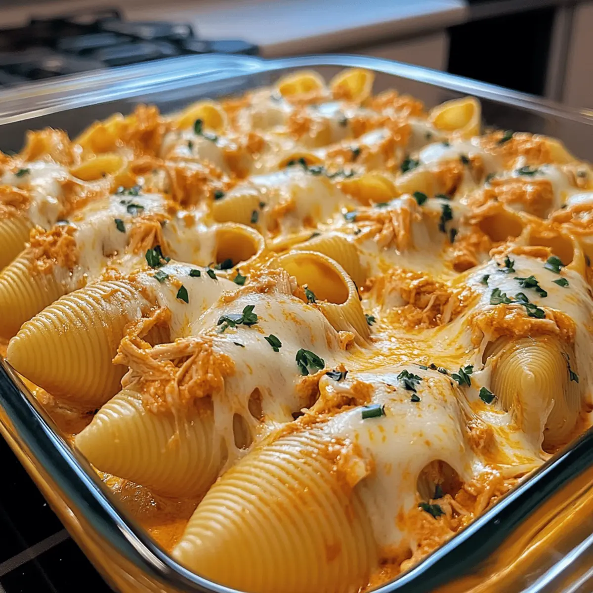 Comforting Twist: Creamy Buffalo Chicken Stuffed Shells merge the delicious tastes of buffalo chicken wings with the heartiness of pasta, creating a uniquely satisfying meal.