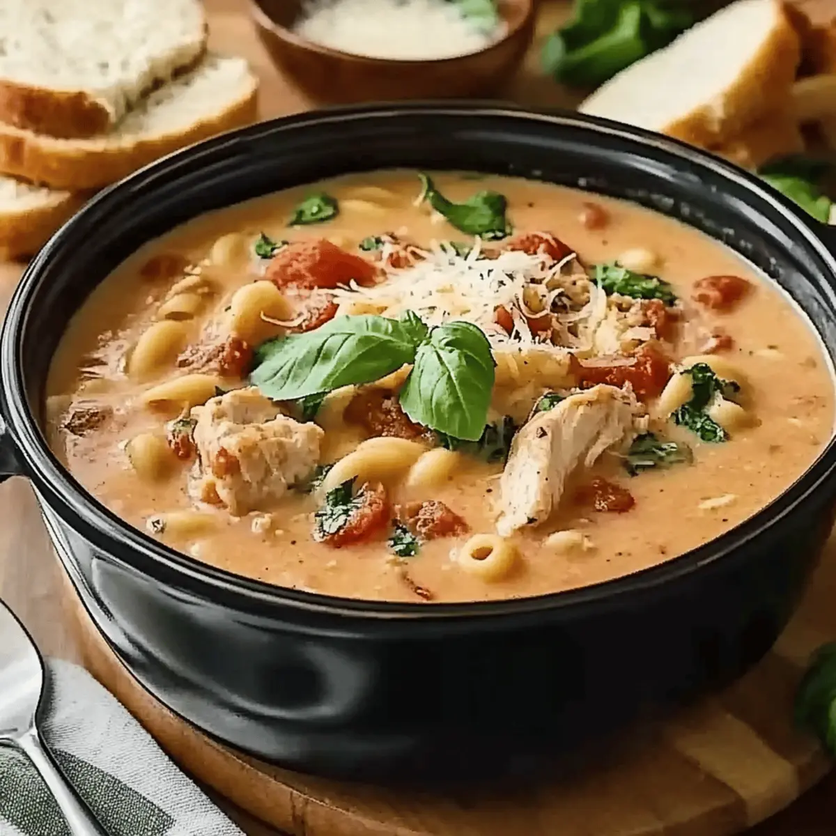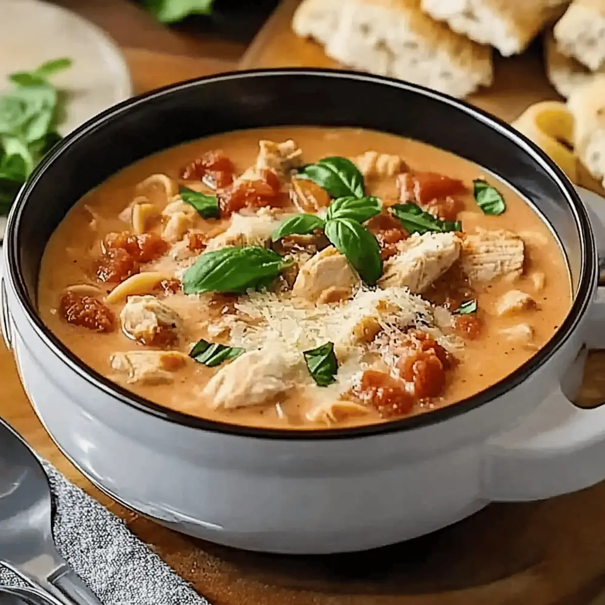 Comforting, Satisfying Meal: This Creamy Tomato Basil Chicken Pasta Soup is the ultimate definition of comfort food, perfect for chilly nights and cozy family gatherings.
