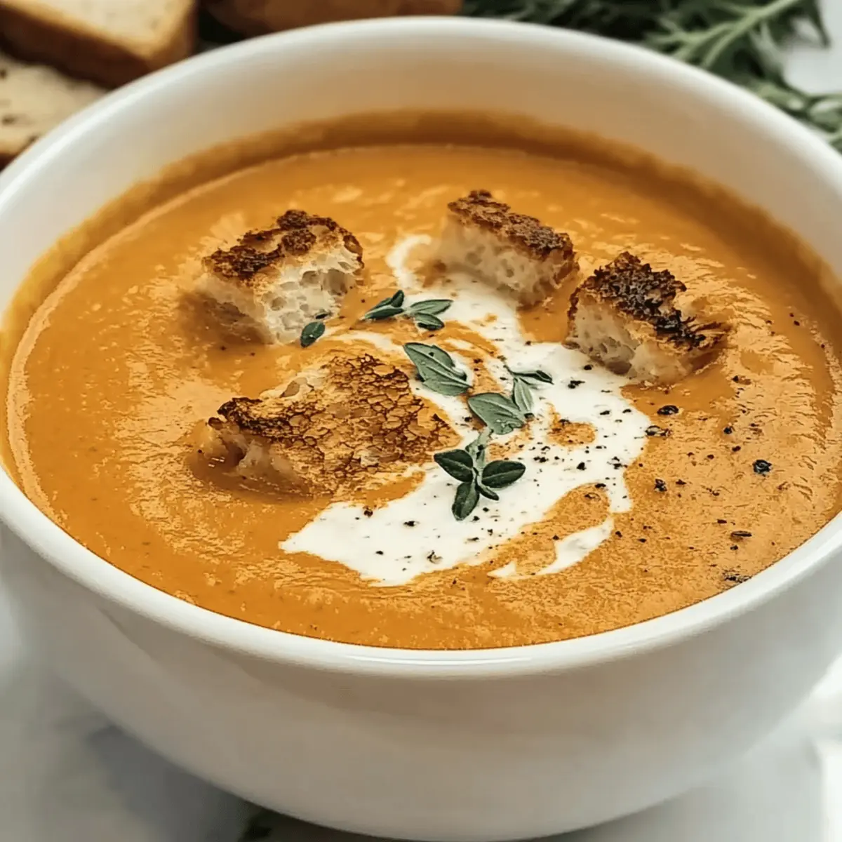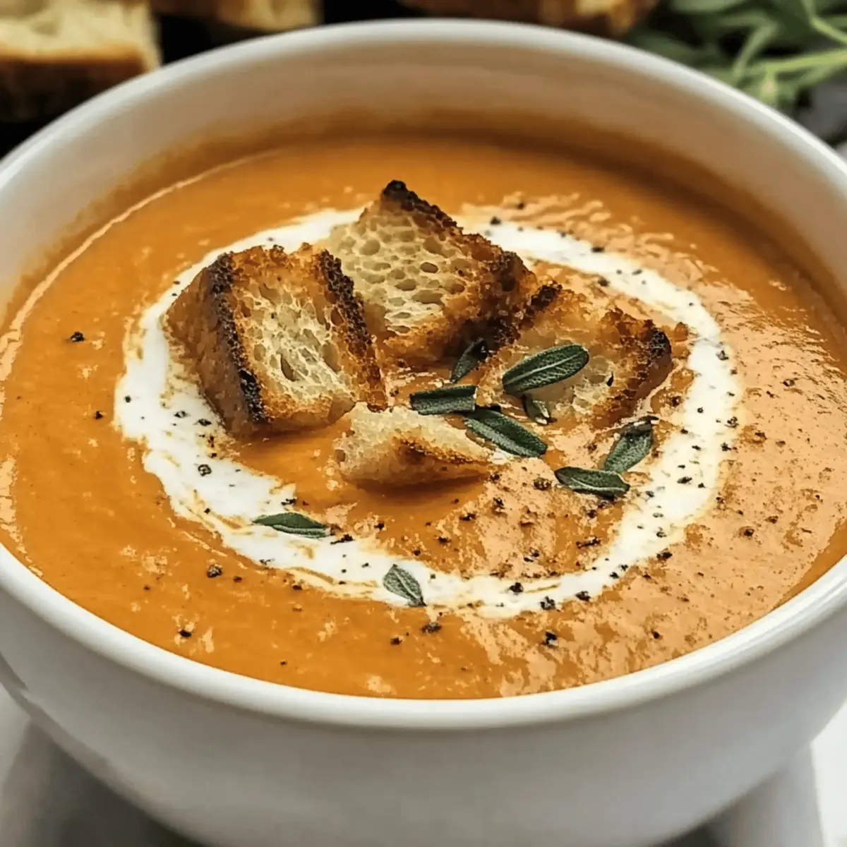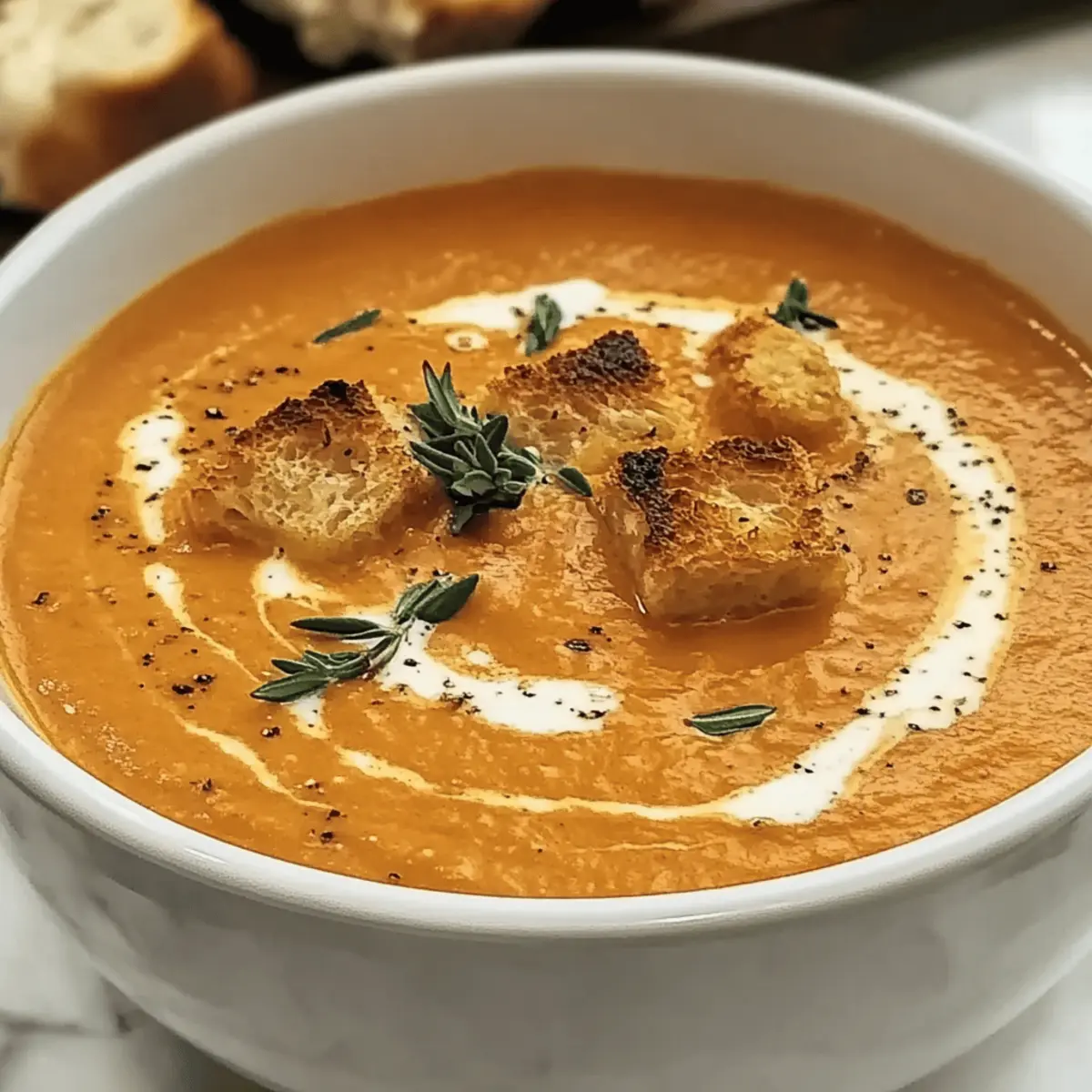 Taste the soup, and season with salt and black pepper according to your preference to elevate the flavors. Once seasoned, serve the soup warm and garnished with fresh thyme sprigs. For an extra touch, consider adding some crunchy croutons on top to enhance the comforting experience of this delightful soup!