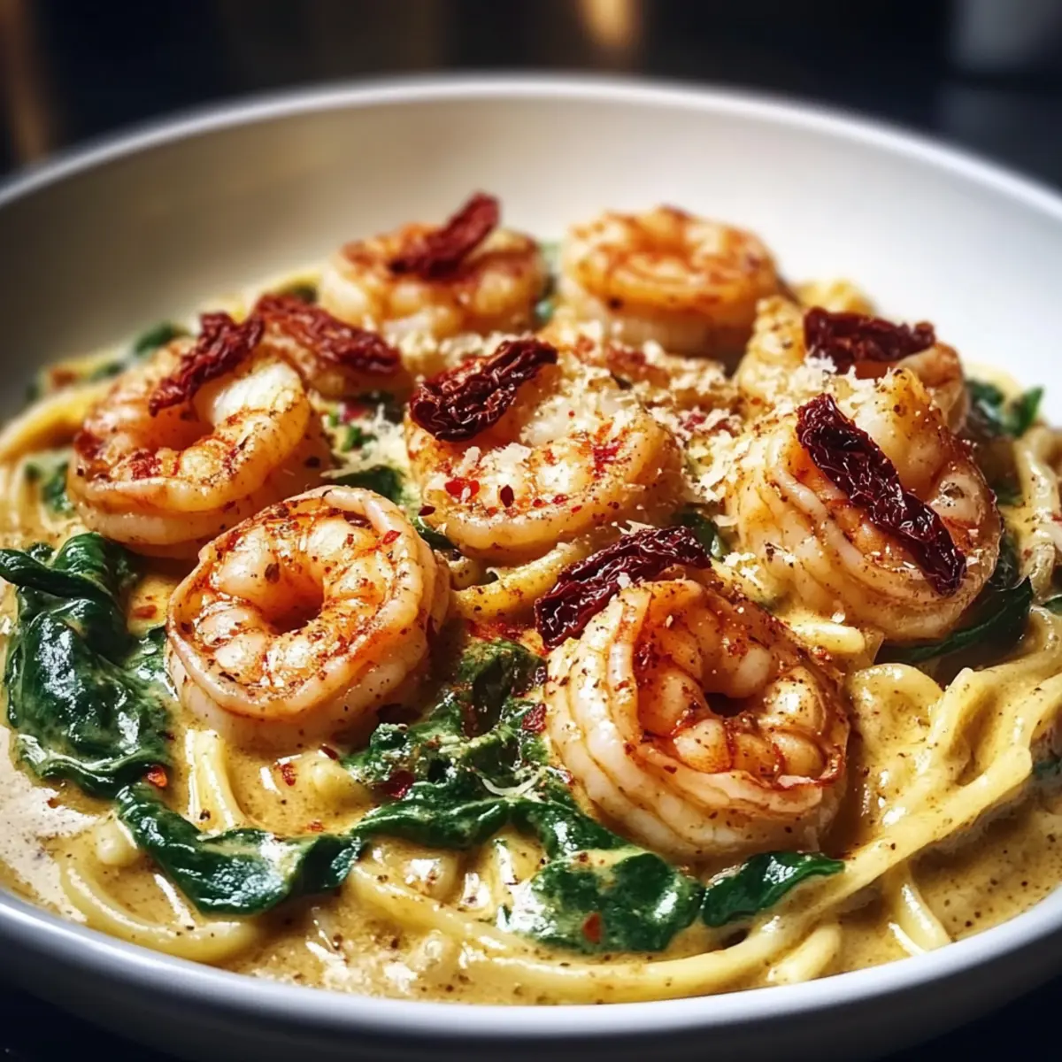 Creamy Sun-Dried Tomato Shrimp with Spinach Pasta Bliss