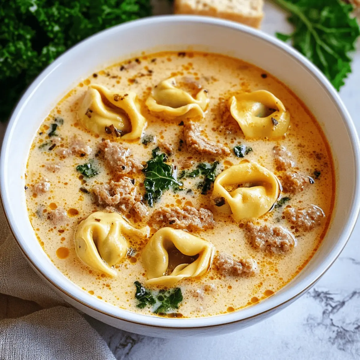 As I cozy up on a chilly evening, the comforting aroma of simmering soup fills my kitchen, instantly transporting me to the heart of Italy. This Creamy Tortellini Soup is more than just a meal; it’s a warm embrace in a bowl, packed with tender tortellini, savory Italian sausage, and the goodness of leafy kale. Best of all, this delightful dish comes together in a mere 30 minutes—perfect for those busy weeknights when you crave comfort food without the fuss. Whether you’re hosting friends or simply treating yourself, this quick, satisfying soup captures the essence of homemade goodness. Intrigued by how easy it is to whip up a familiar favorite? Let’s dive into this heartwarming recipe!