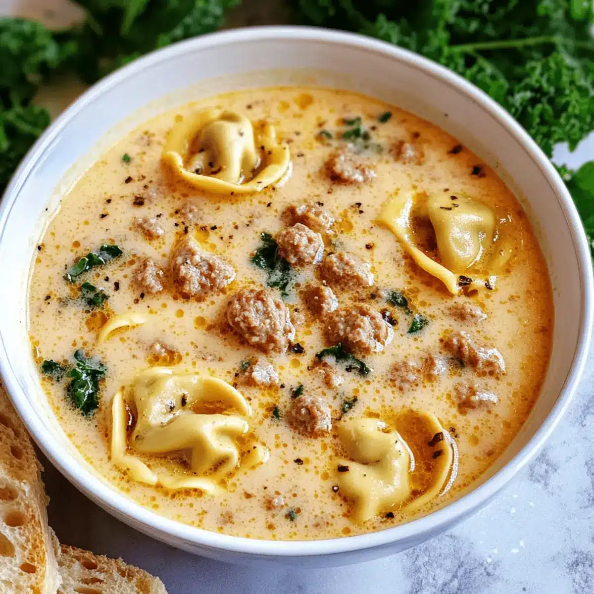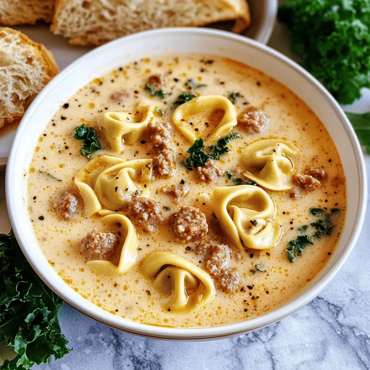 Flavor-packed goodness: Rich Italian sausage melds beautifully with creamy broth and tender tortellini, bringing joy in every spoonful.