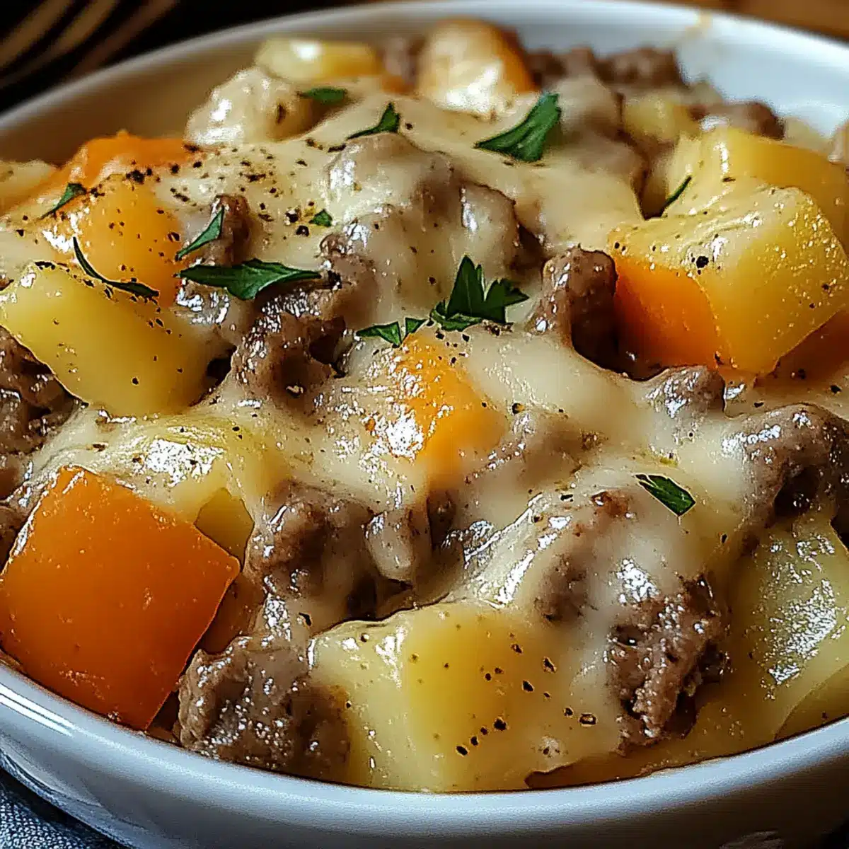Layer Smartly: Layer the ingredients thoughtfully for optimal flavor distribution and texture in each bite. Start with potatoes, followed by beef and veggies, and top with cheese.