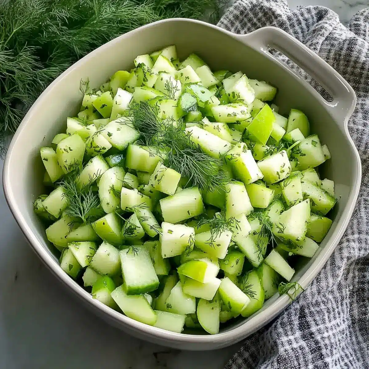Begin by washing and drying all your vegetables. Thinly slice the celery ribs on a bias to enhance texture and presentation. Next, core and dice the green apples into bite-sized pieces, tossing them with a bit of lemon juice to prevent browning. Cut the English cucumber into 1/4-inch half-moons, finely chop the red onion, and lastly, chop the fresh dill. Set all the prepped vegetables aside in a large mixing bowl.