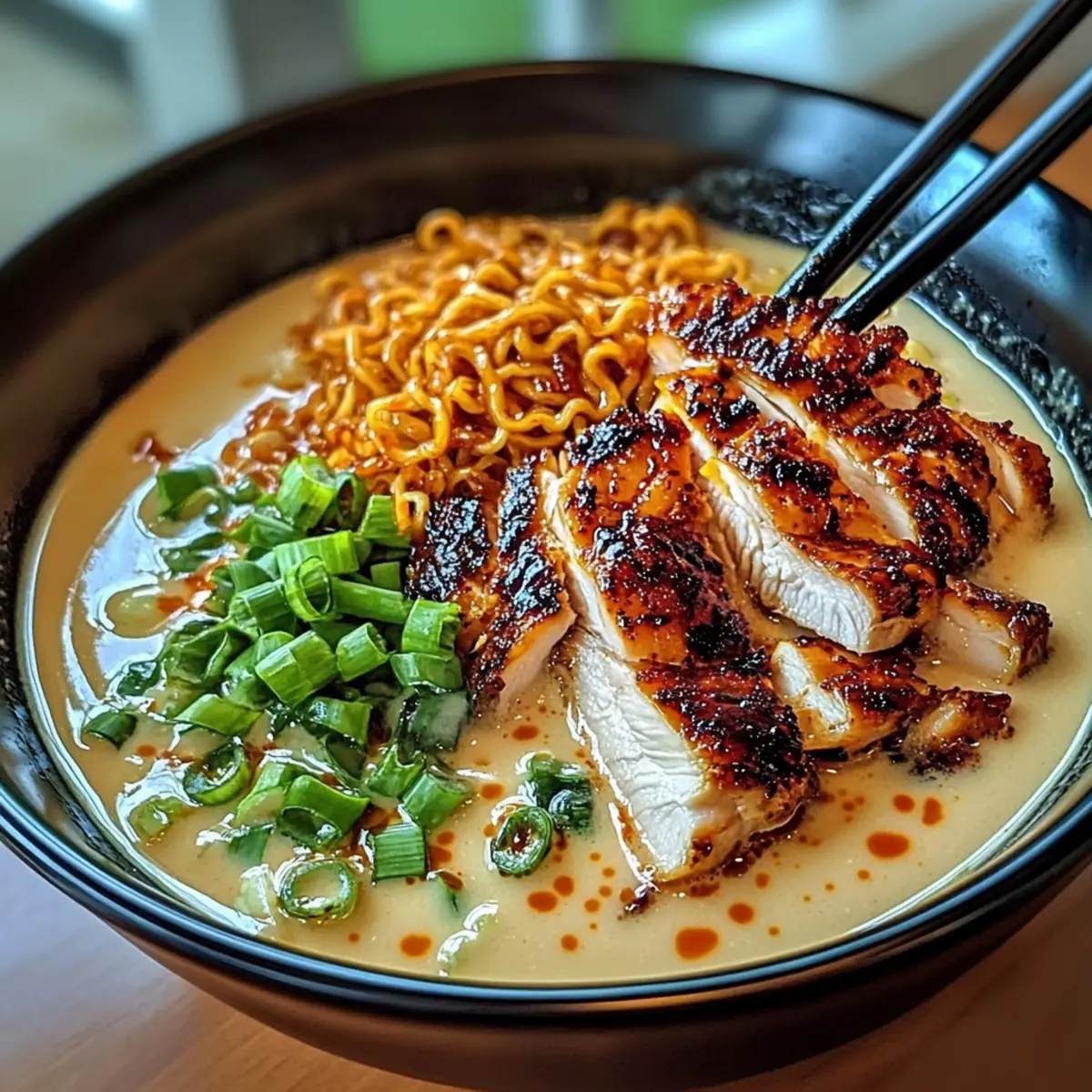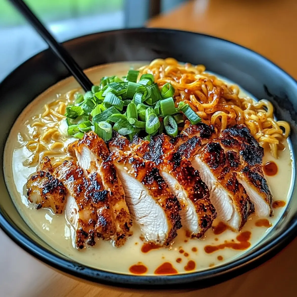 Savor Fiery Chicken Ramen with Creamy Garlic Sauce Tonight