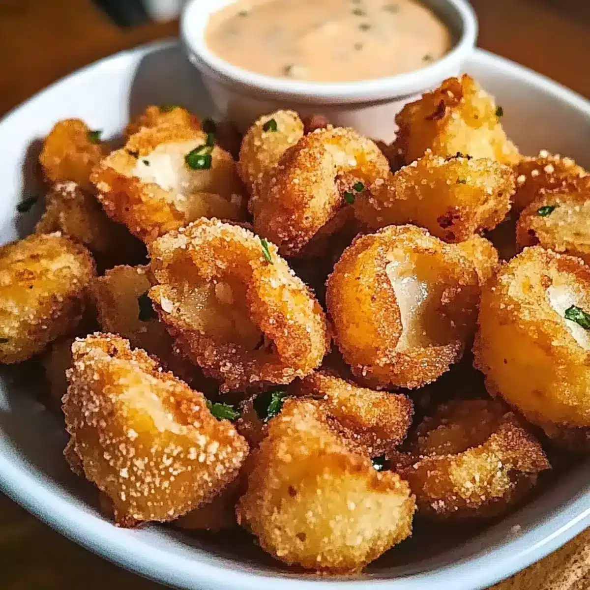Creamy Dipping Sauce: A rich garlic aioli or tangy tzatziki complements the crunchiness, adding creaminess that pairs beautifully with the fried mushrooms.