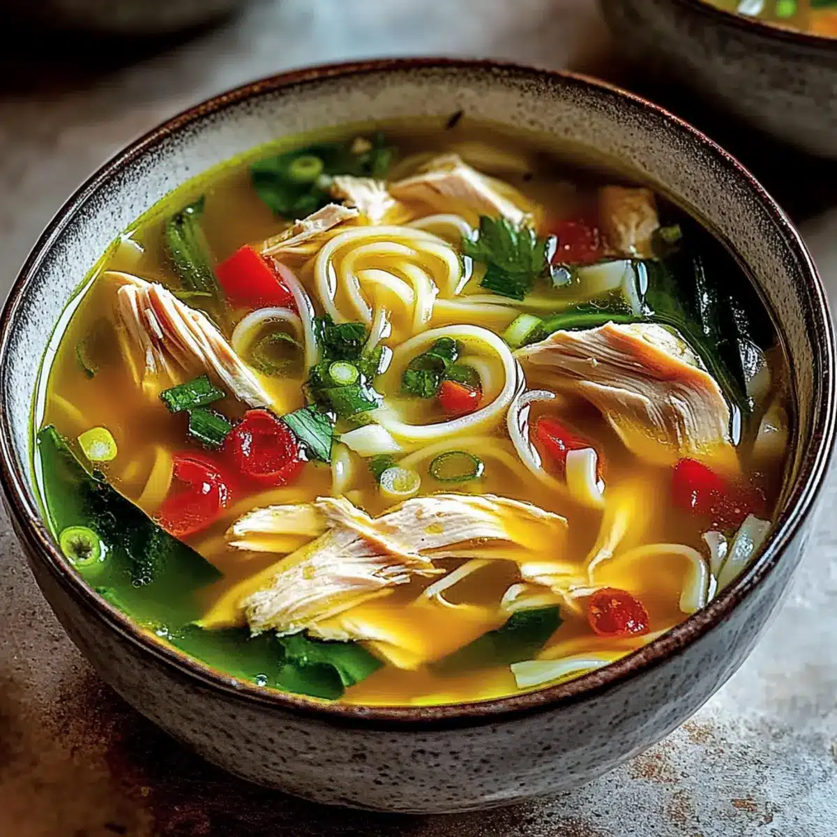 Definitely! If you’re cooking for anyone with dietary restrictions, be sure to choose low-sodium chicken broth if sodium is a concern. Additionally, for gluten-free options, opt for rice noodles or gluten-free noodles. This soup can easily be made vegetarian by substituting chicken with tofu, ensuring it’s inclusive for everyone at the table.