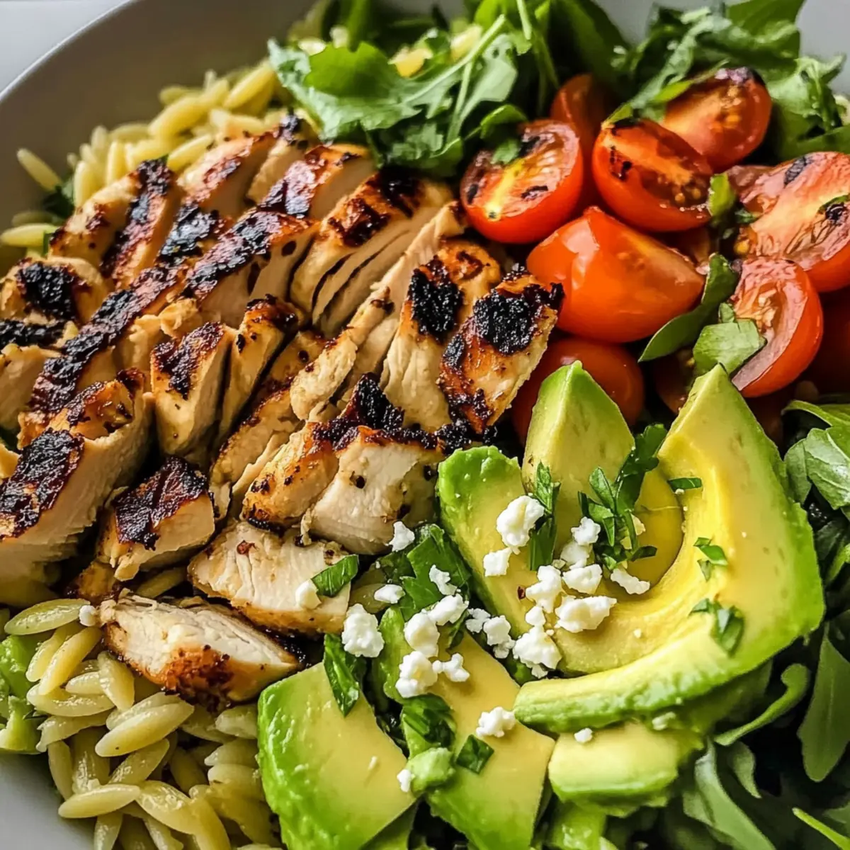 Freezer: While you can freeze the orzo and grilled chicken for up to 2 months, avoid freezing fresh ingredients like avocado and tomatoes, as they can lose texture.