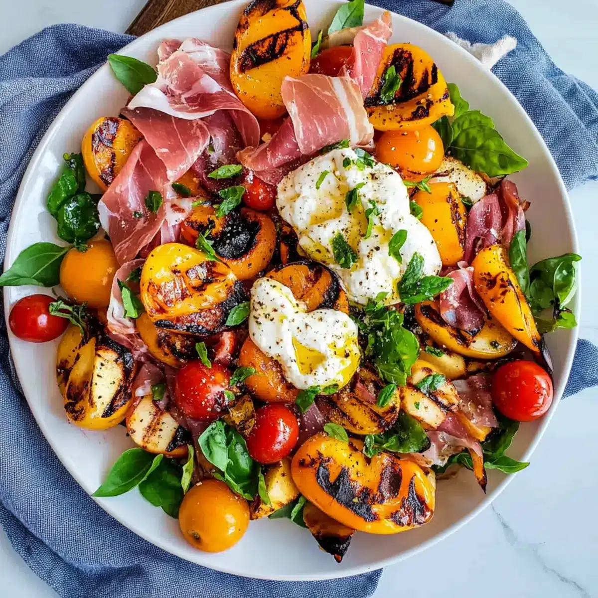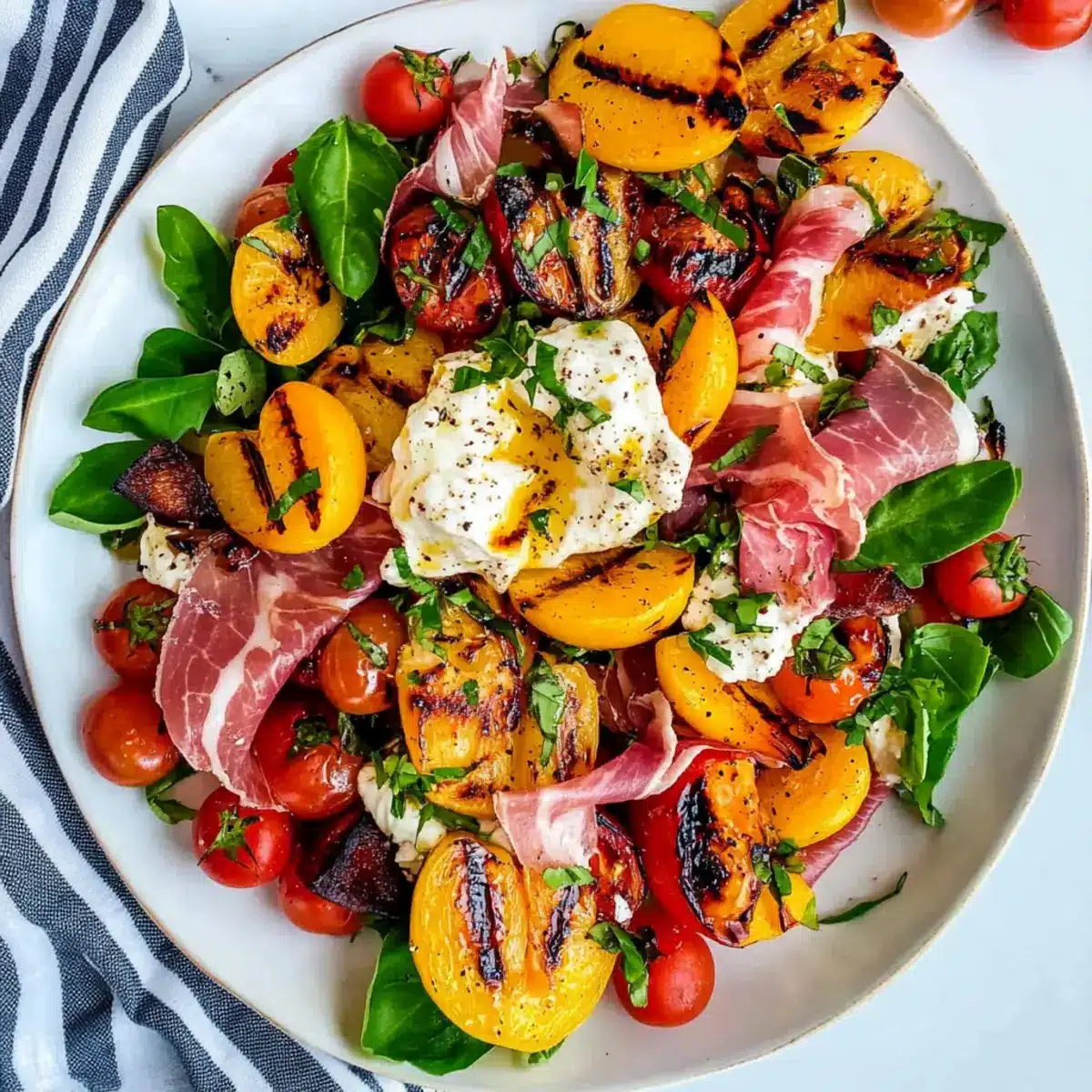 • Customize to Taste: Don’t hesitate to experiment with seasonal fruits or fresh herbs; this flexibility makes your Grilled Nectarine Burrata Prosciutto Salad truly your own!