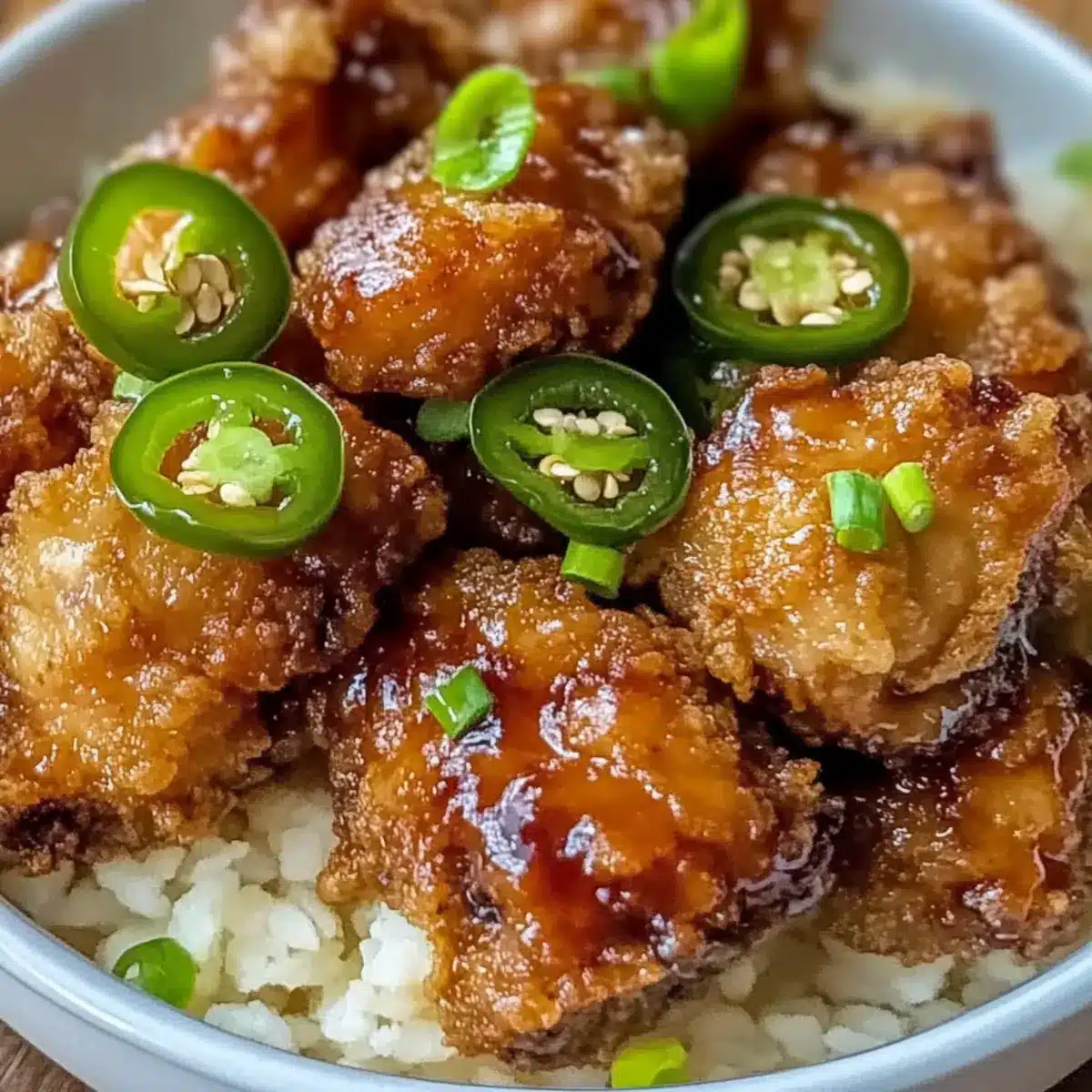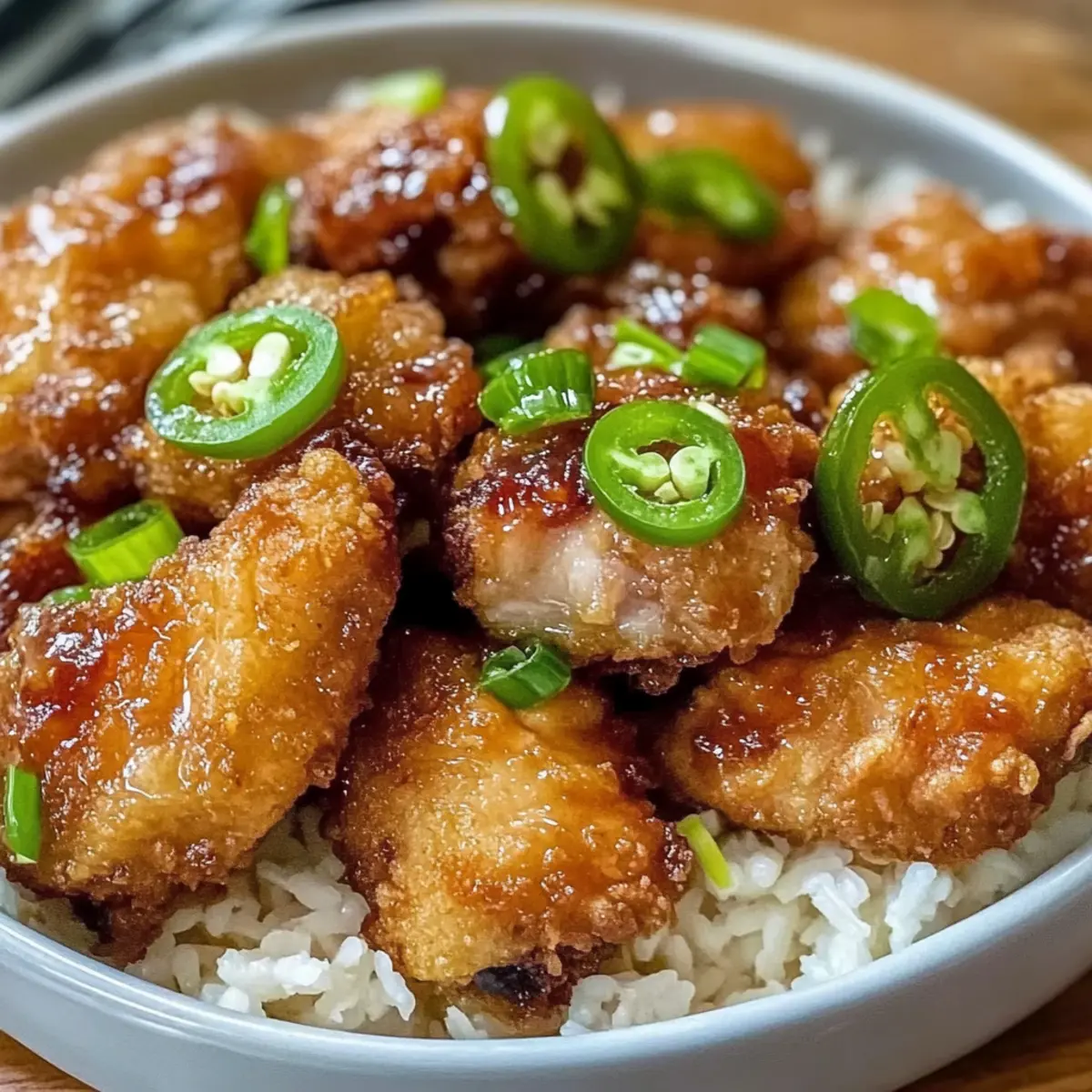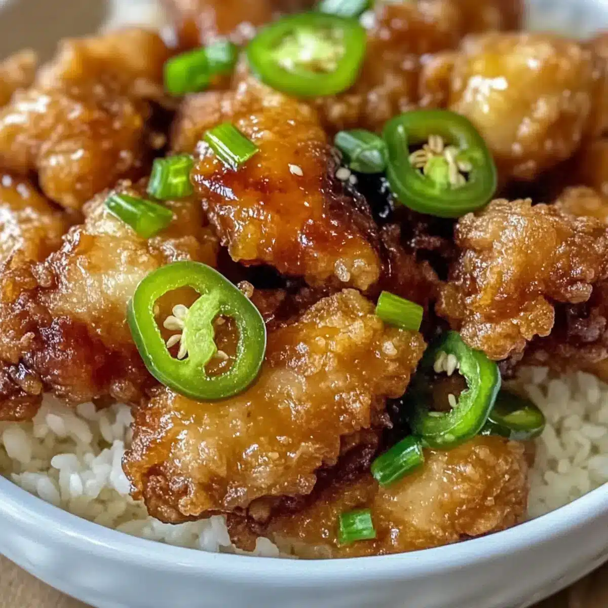 In the same oil used for frying the chicken, quickly fry the sliced jalapeños until they’re crispy, which will take about 2-3 minutes. Keep an eye on them as they can turn from perfect to burnt quickly. The crispy jalapeños will add an exciting crunch and extra spice to your finished dish.