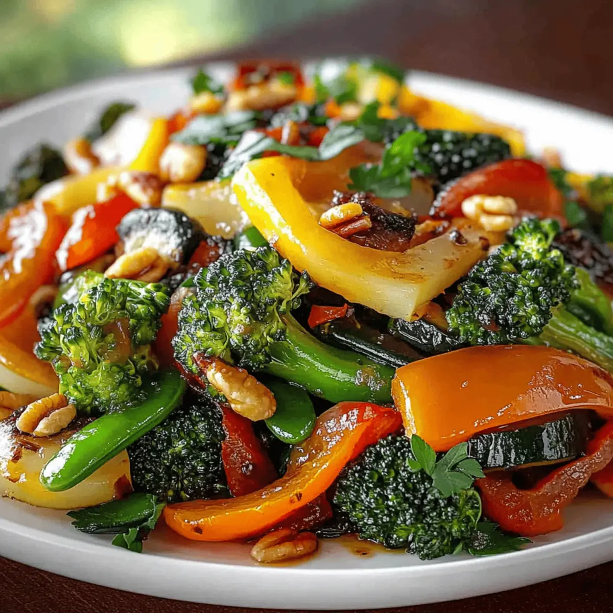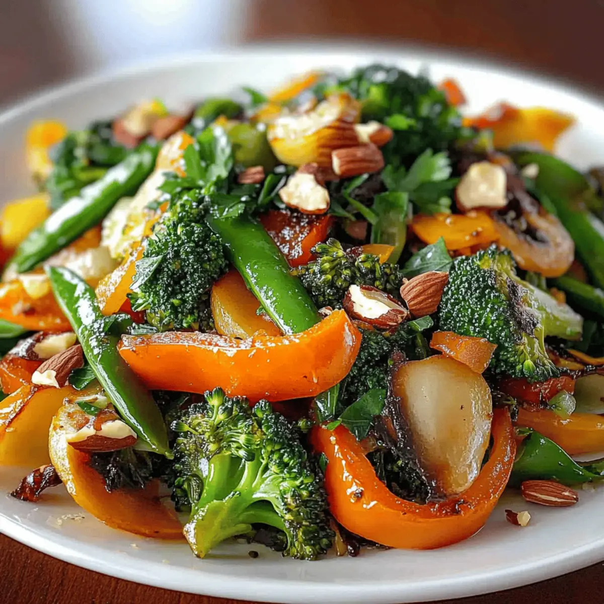 Once everything is well combined, remove the skillet from heat. Toss the vegetables thoroughly one last time and transfer them to a serving dish. If you like, garnish with optional toppings such as toasted nuts, fresh herbs, or grated Parmesan for extra flavor and texture. Serve immediately to enjoy the vibrant colors and crisp-tender textures at their best!