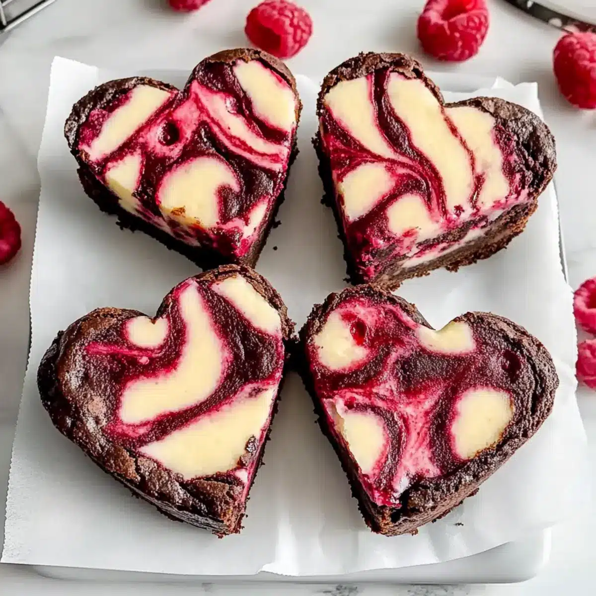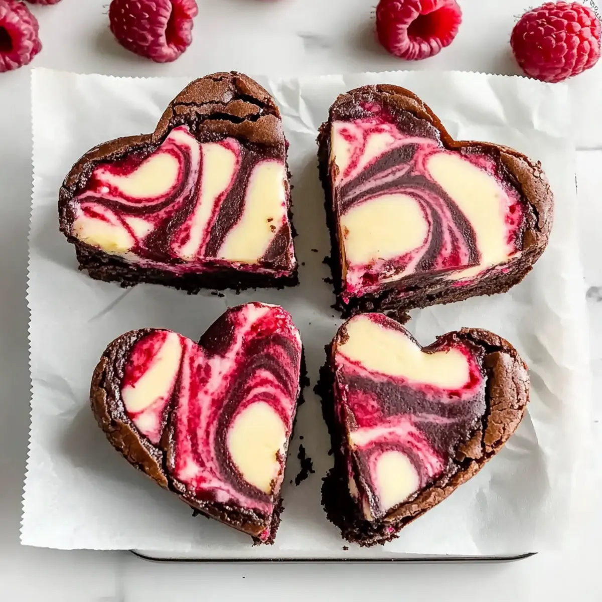 Delicious Heart Shaped Brownies with Raspberry Swirl Delight