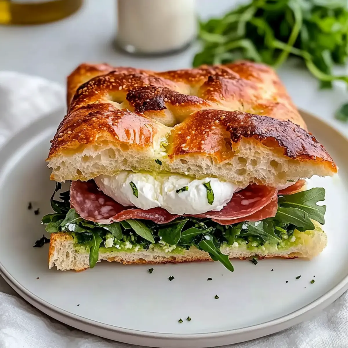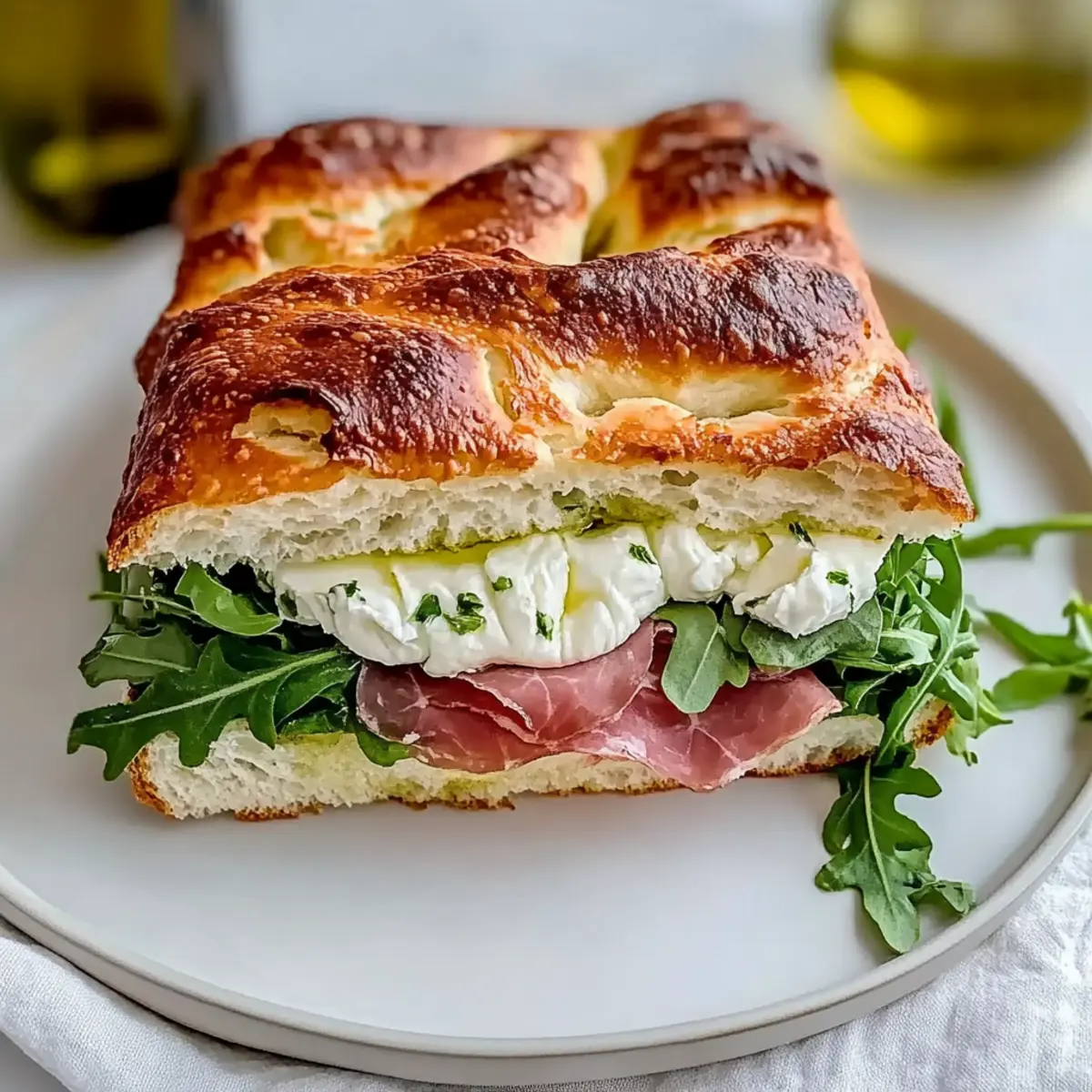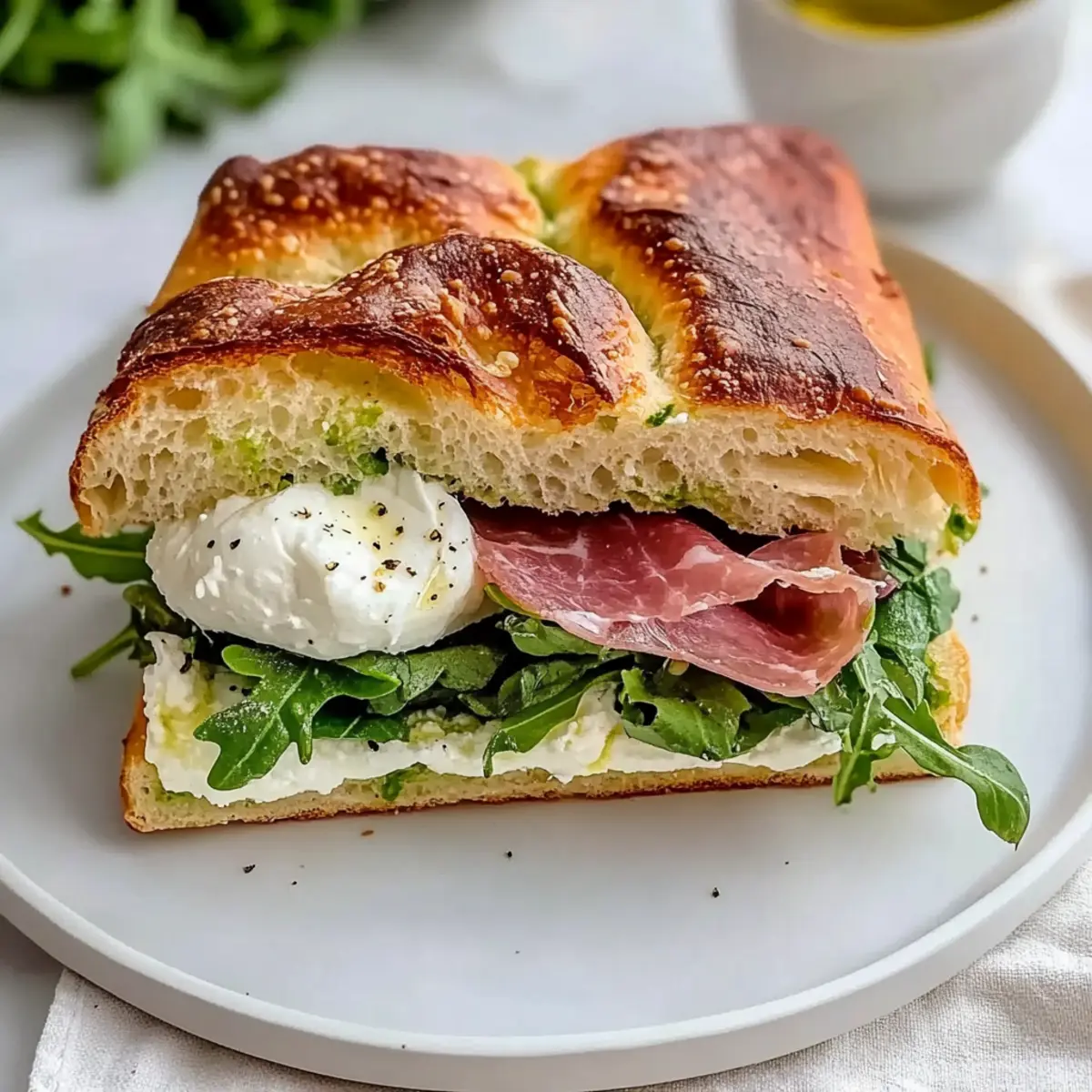 Hearty Texture: Imagine biting into beautifully soft focaccia paired with creamy cheese and crunchy arugula, creating a satisfying combination that feels gourmet yet simple.