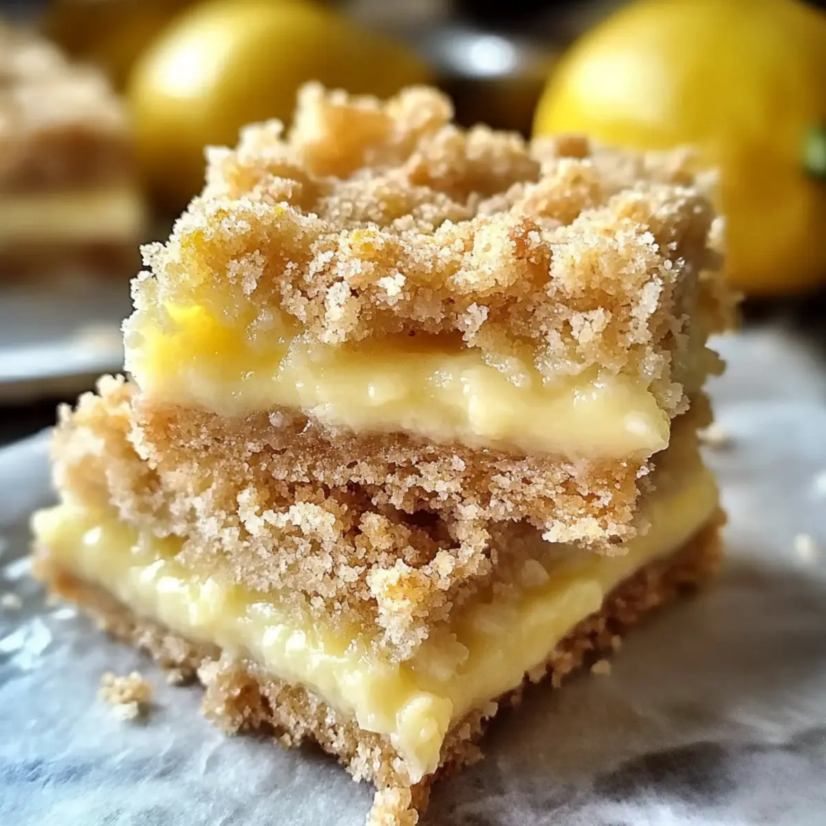 These Lemon Crumb Bars are perfect for busy home cooks looking to save time! You can prepare the crust and the crumb topping up to 24 hours in advance. Simply assemble these components and store them separately in the refrigerator. The filling can also be mixed ahead and kept chilled for up to 3 days to maintain its creamy texture. When it’s time to bake, just spread the filling over the crust and top with the reserved crumb mixture before popping it into the oven. This way, you’ll enjoy fresh, vibrant Lemon Crumb Bars with minimal effort, making dessert time a breeze!