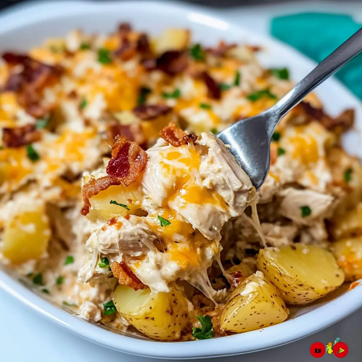 Indulge your family in this Loaded Potato Ranch Chicken Casserole, a dish that promises comfort in every bite!