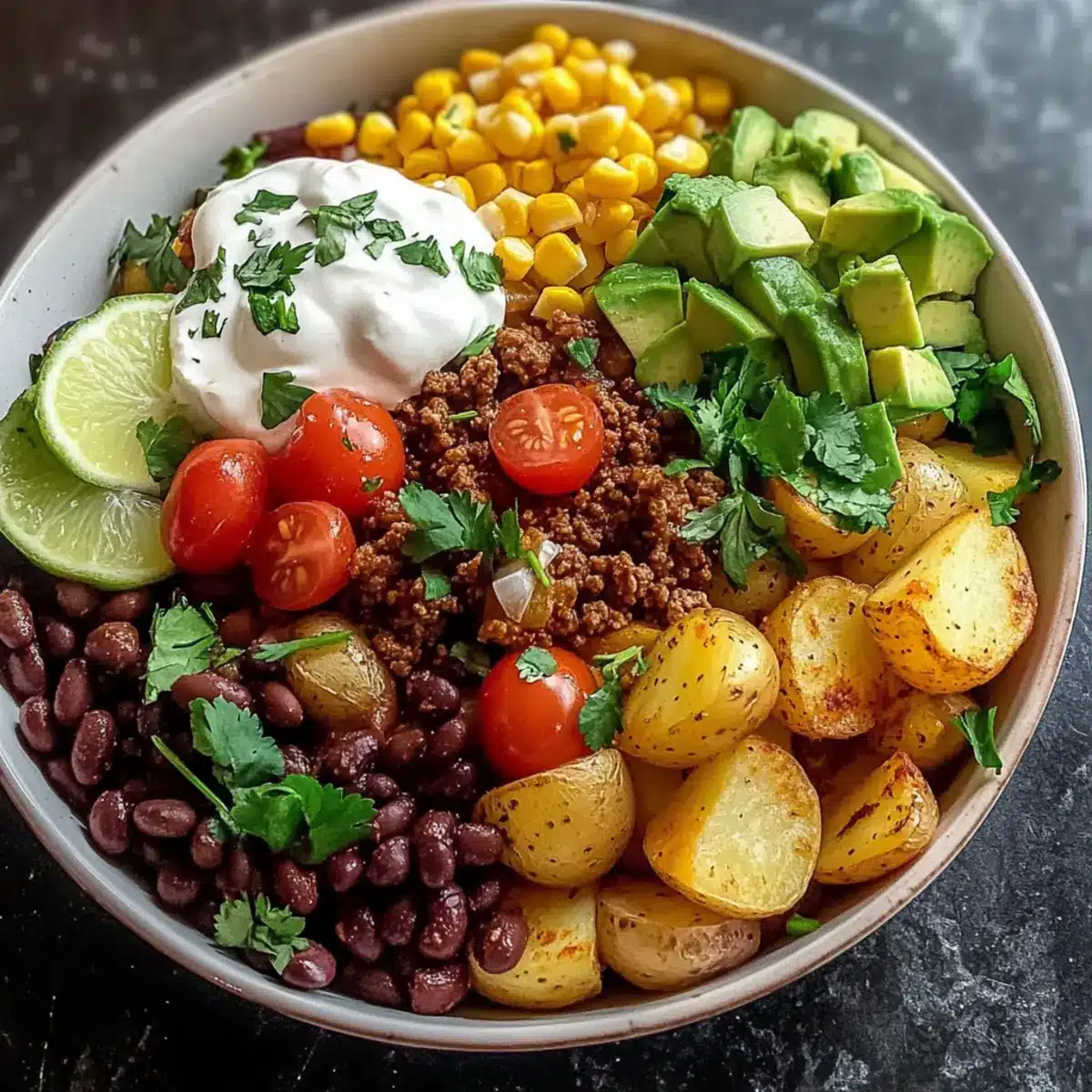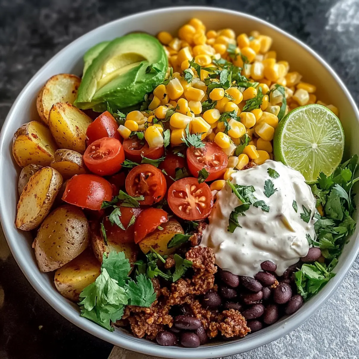 To elevate your meal, serve each bowl with lime wedges and a dollop of sour cream (or Greek yogurt for a healthier twist) on top. This zesty addition enhances the flavors beautifully and makes for a delightful presentation, inviting everyone to dig into their own Loaded Potato Taco Bowl!