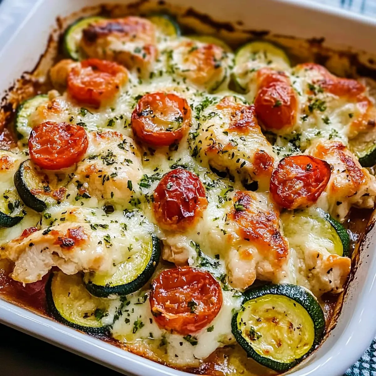 As I stood in my kitchen, the aroma of roasted garlic and fresh herbs wafted through the air, instantly transporting me to sun-drenched Mediterranean shores. This Mediterranean Chicken Zucchini Bake has become my go-to for busy weeknights! It brings together succulent chicken, vibrant zucchini, and sweet cherry tomatoes—each bite a celebration of wholesome goodness. Not only is this dish gluten-free and low-carb, but it’s also endlessly satisfying and makes clean-up a breeze since everything cooks in one pan. Perfect for both novices and seasoned chefs, you’ll find that this comforting yet healthy meal will win over even the pickiest eaters at your table. Curious about how to recreate this delight in your own home? Let’s dive in!