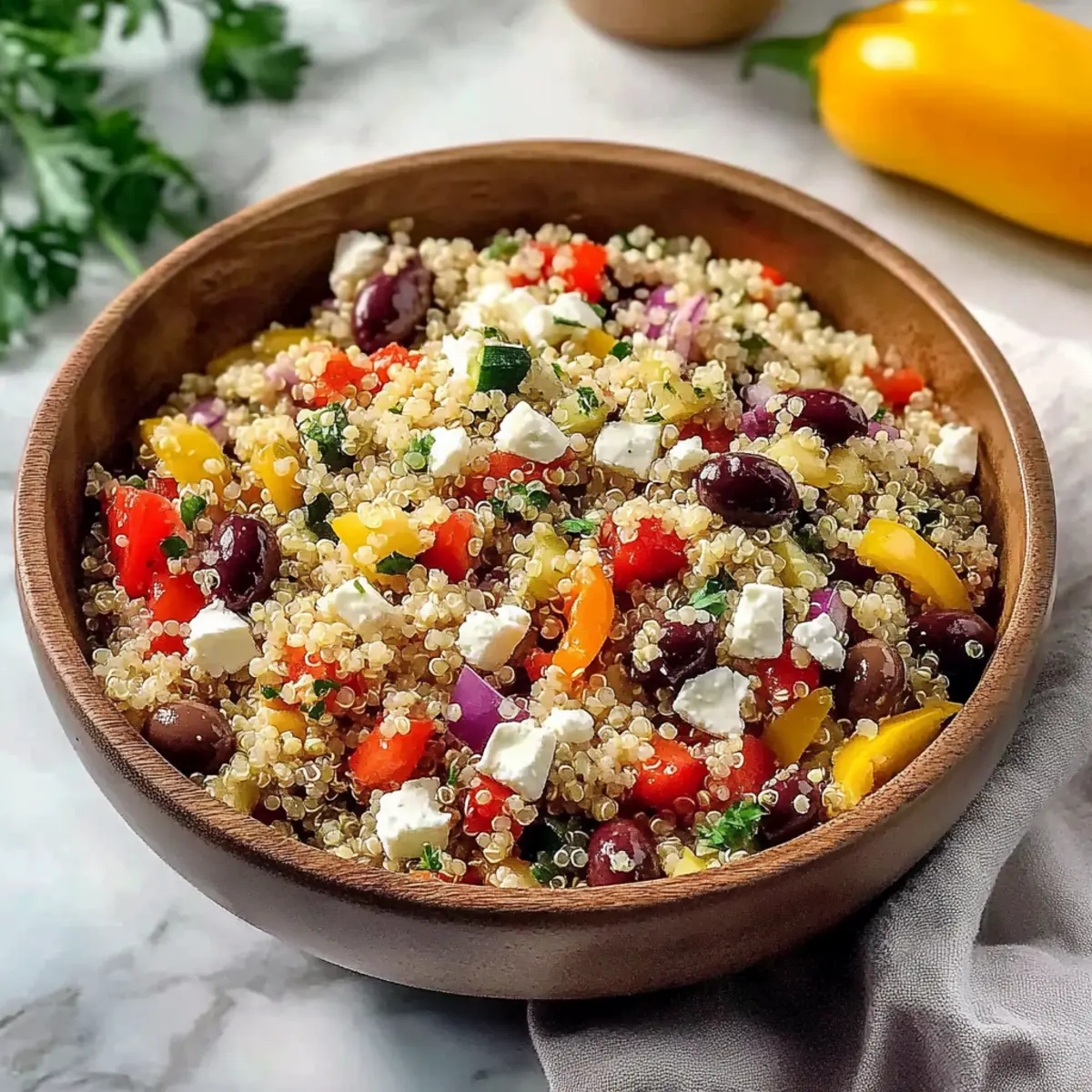 “Have you ever been caught in the lunch rut, staring at your fridge with no inspiration? Trust me, I’ve been there more times than I can count. That’s why I’m excited to share this Easy Mediterranean Quinoa Salad with Feta and Fresh Veggies! Bursting with vibrant colors and fresh flavors, this salad is not only a breeze to whip up but also perfect for meal prep. It combines fluffy quinoa with a delightful mix of crunchy veggies, briny olives, and creamy feta, all cloaked in a zesty red wine vinaigrette. Healthy, vegetarian, and gluten-free, it’s the ideal choice for anyone longing to break free from fast food. So whether you’re planning a picnic or simply want a satisfying fridge staple, this Mediterranean Quinoa Salad fits the bill. Curious to see how you can make this quick and nourishing dish your new go-to? Let’s dive in!”