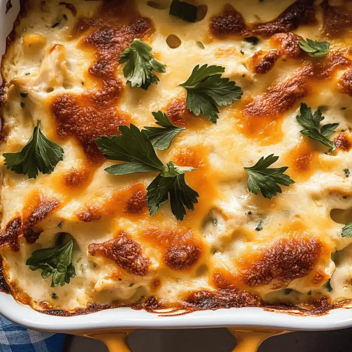 Place the baking dish in the preheated oven and bake for 25-30 minutes. Keep an eye on it; you’re looking for that bubbling cheese and a beautifully golden-brown topping. The aroma will fill your kitchen, signaling that your Million Dollar Chicken Casserole is nearly ready.