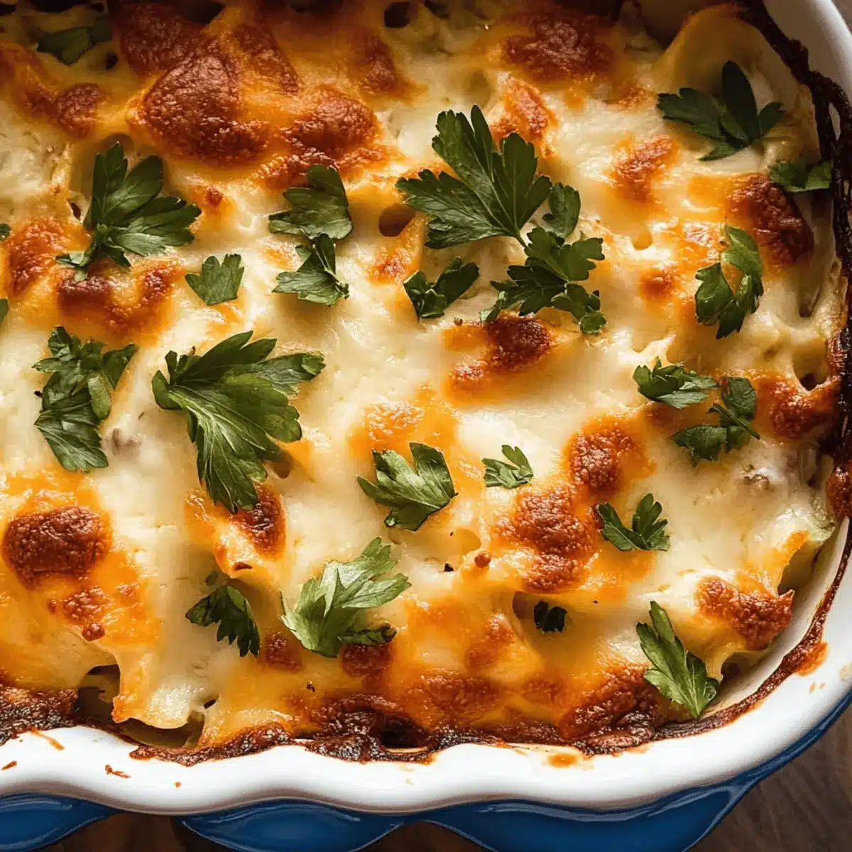 Comforting warmth envelops you with every bite of this creamy casserole, making it the ultimate comfort food. Effortless preparation ensures that even novice cooks can whip it up with ease, making weeknight dinners a breeze. Customizable options let you add your favorite ingredients like bacon or jalapeños for an extra punch. Crowd-pleaser status means it’s perfect for family gatherings or potlucks, where everyone will be asking for the recipe. Flavor-rich and satisfying, it combines gooey cheese with a crunchy topping for the perfect textural contrast. This dish checks all the boxes for a meal that everyone will love!