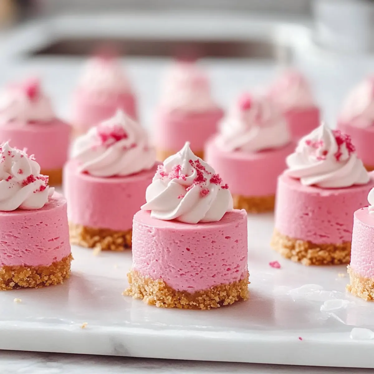 Visually Stunning: Each bite is a miniature work of art, with its vibrant pink hue and fluffy whipped topping, making them an eye-catching addition to any dessert table.