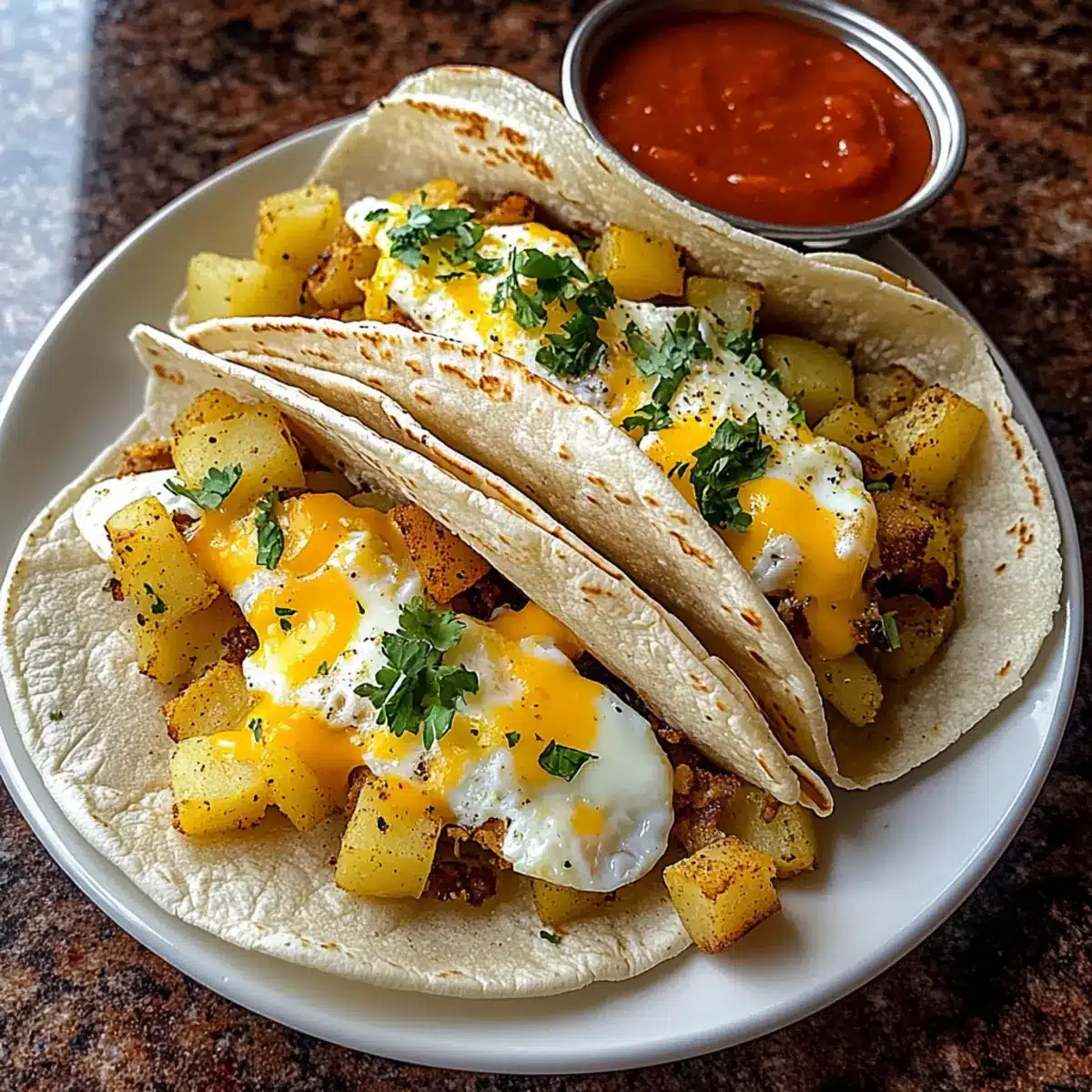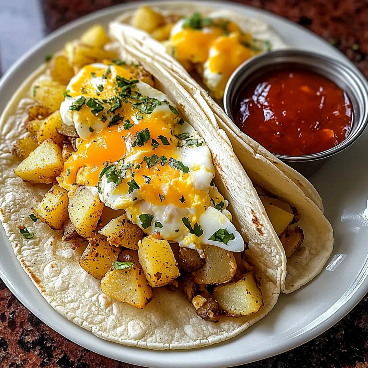 Get ready to enjoy your delicious Potato, Egg, and Cheese Breakfast Tacos!