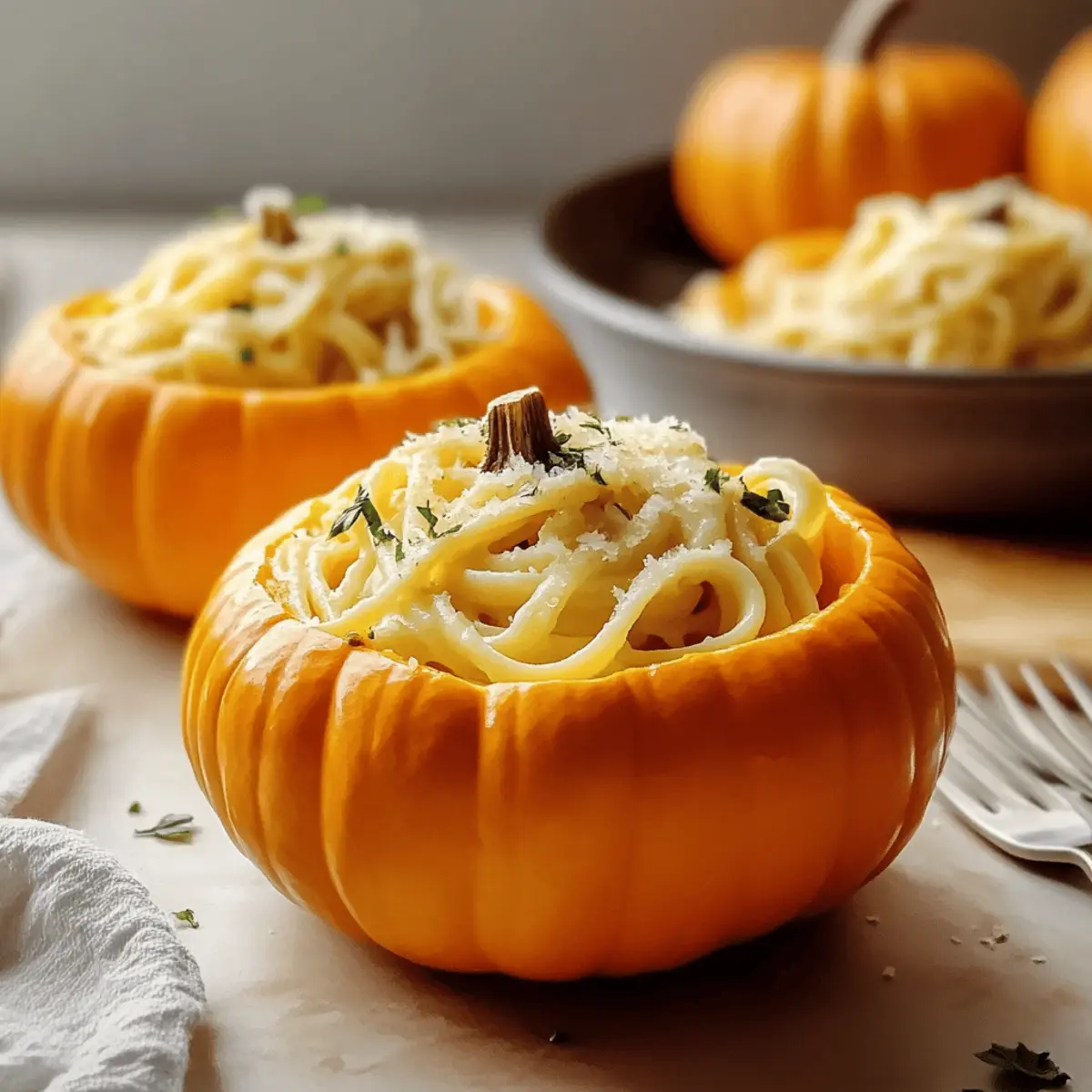 Visually Stunning: Serving the pasta in mini pumpkins not only enhances flavor but also doubles as a charming centerpiece, sparking joy in every bite.
